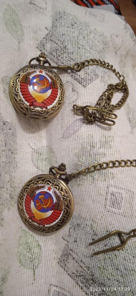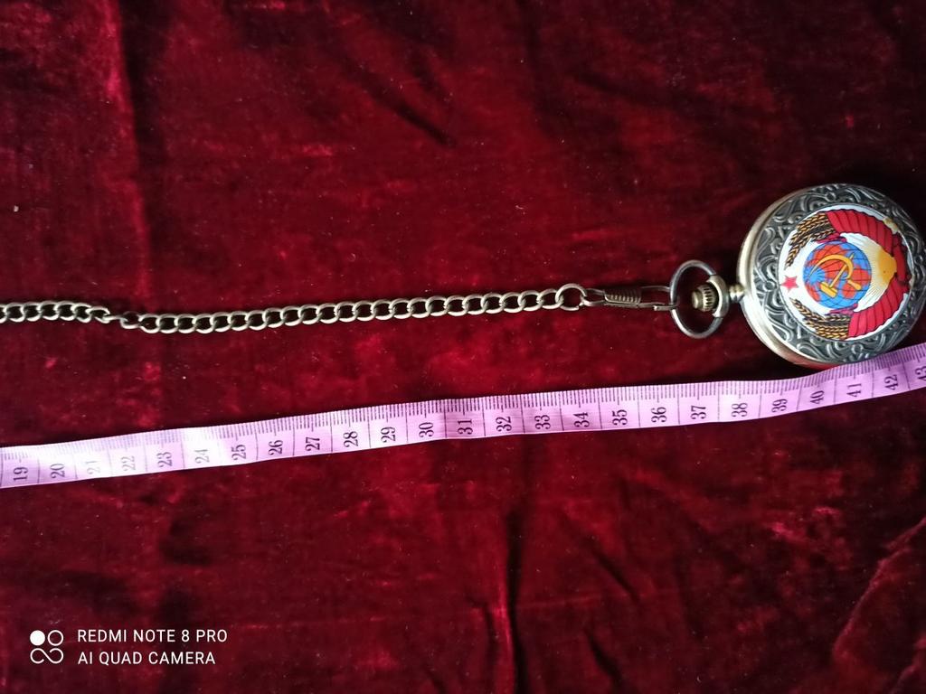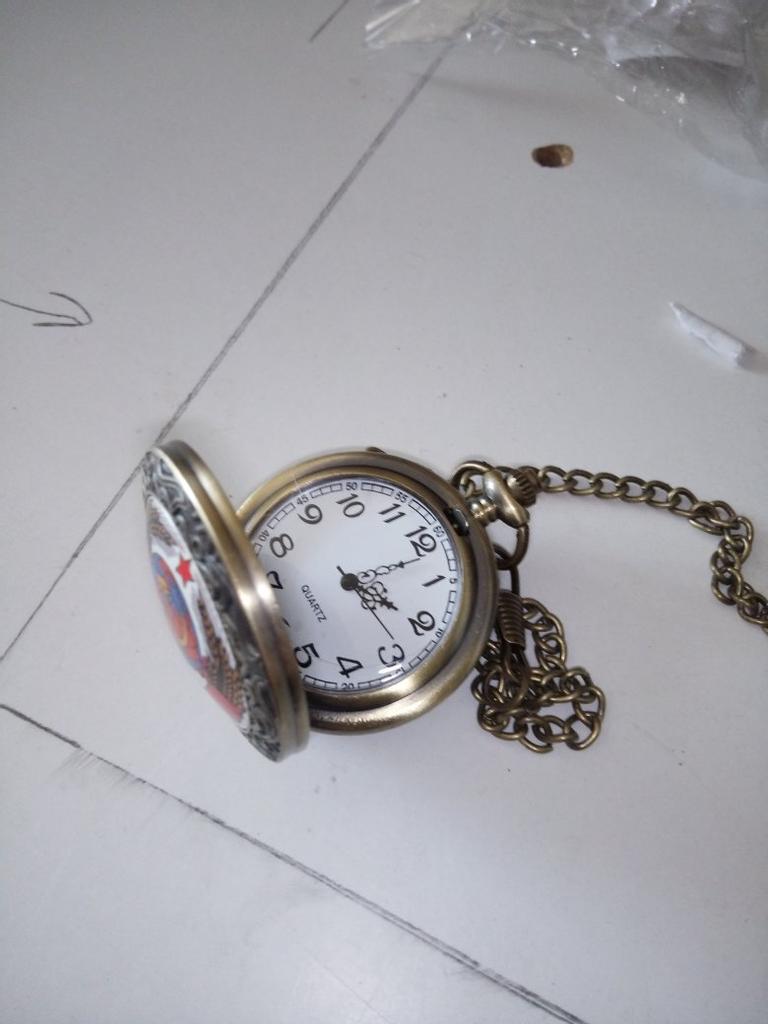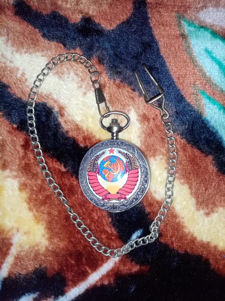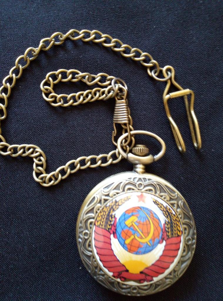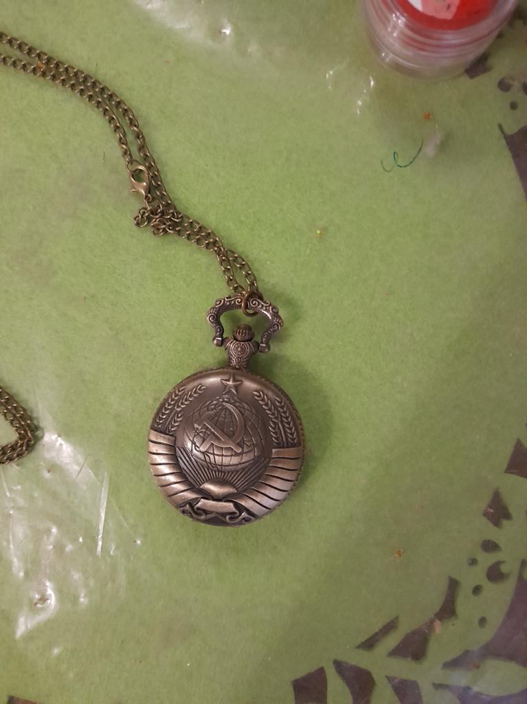 Retro Bronze USSR Soviet Sickle Hammer Quartz Pocket Watch Vintage Clock with Chain Women Men Gift