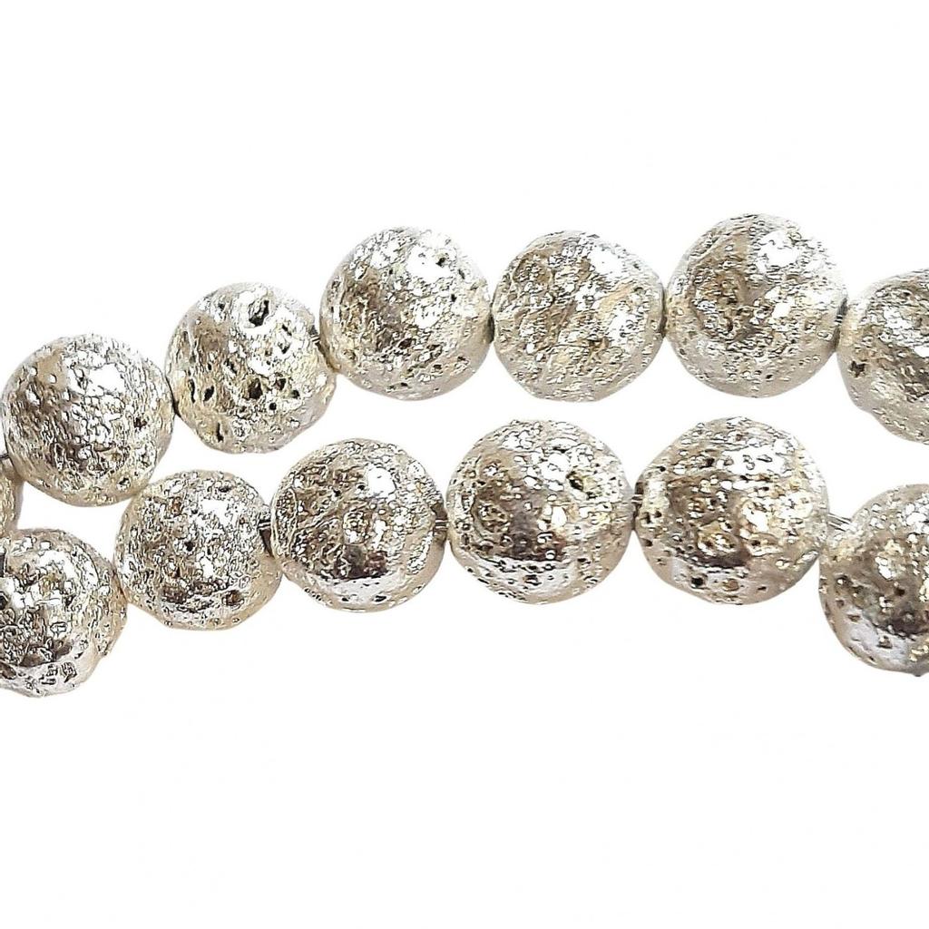 Strand of 60 Round Beads 6mm 6 Mm In Tinted Silver Lava Stone