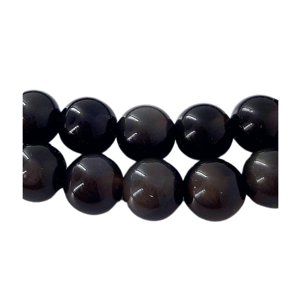 Semi-Precious Silver Silver Black Obsidian Mineral Round Bead Strand 8mm 8mm New
