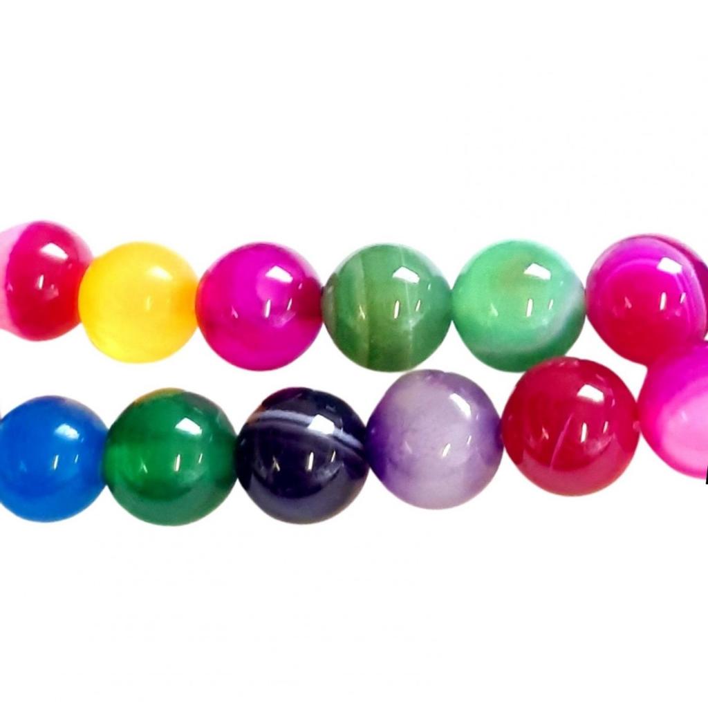 String of 46 round semi-precious beads 8mm 8 mm 0.8 cm in multicolored Agate (blue, red, pink, green, black, purple, yellow, brown, black, etc.) Model: string of 46 round beads (to + or - a pearl)