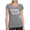 Ultrabasic Femme Graphique Blessed Auntie Tee Shirt Mignon Tante Imprime T-shirt Noir Profond