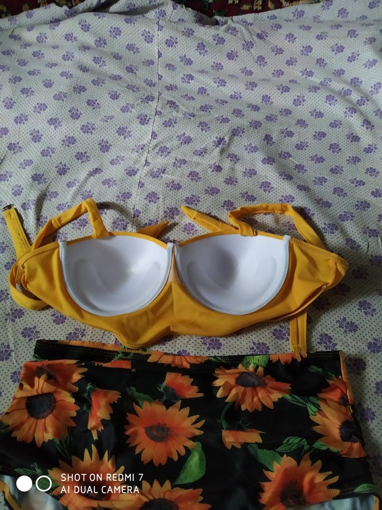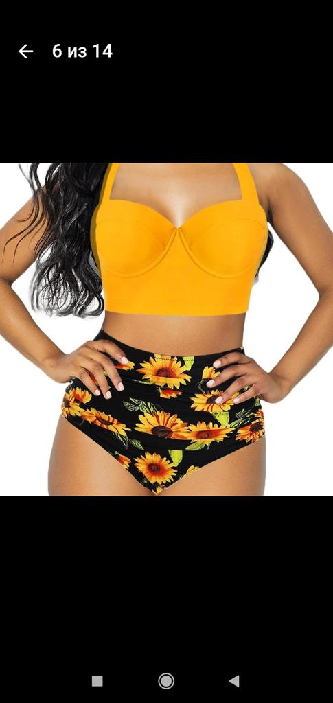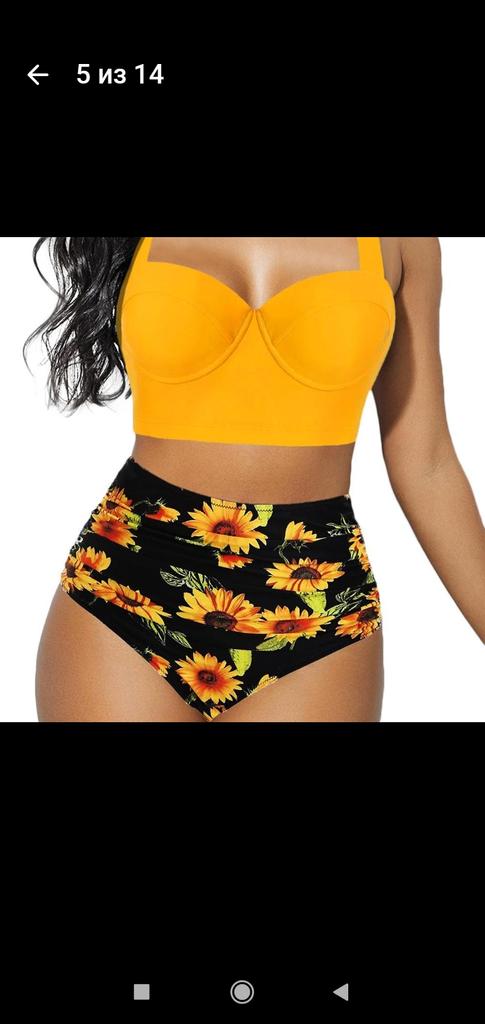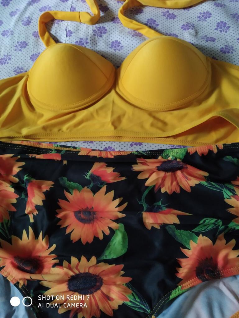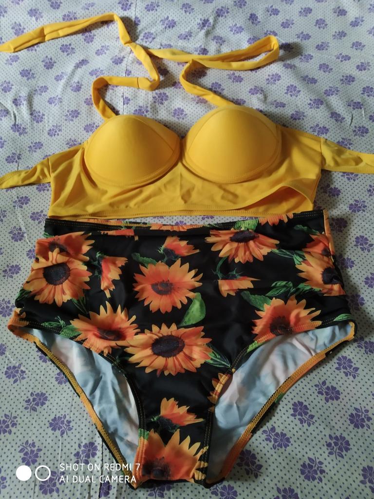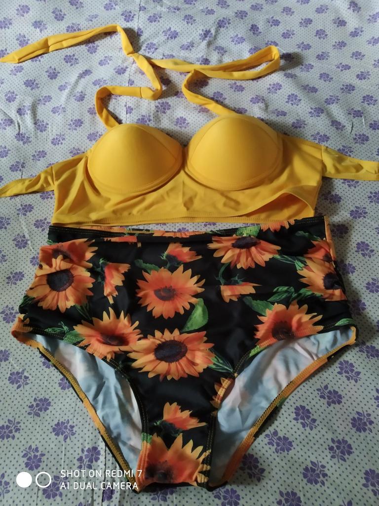Women Sexy Bikini Set Bandage Push Up Padded Swimwear Swimsuit Summer Bathing Beachwear High Waist Sumflower 2Pcs Set