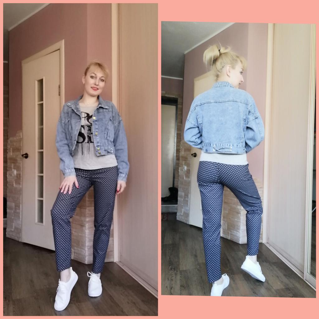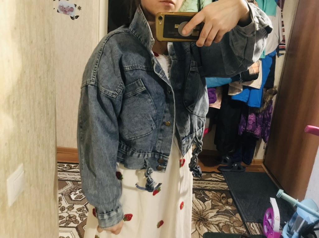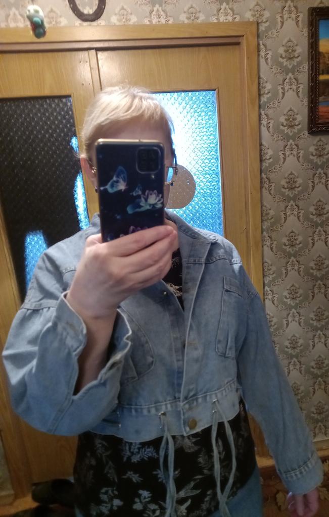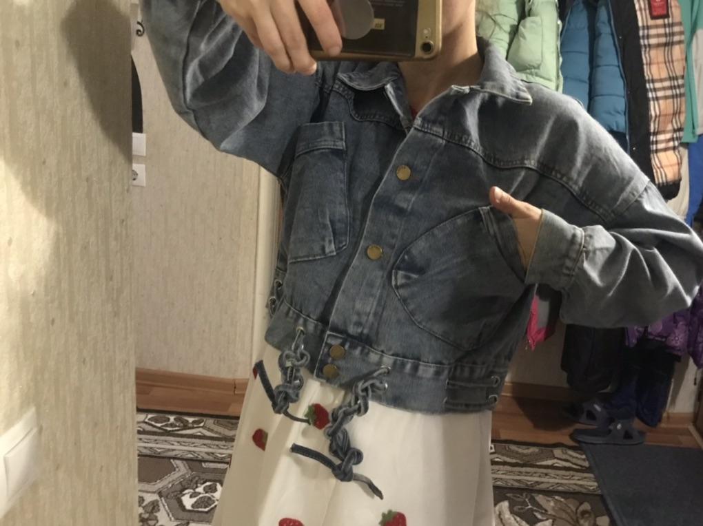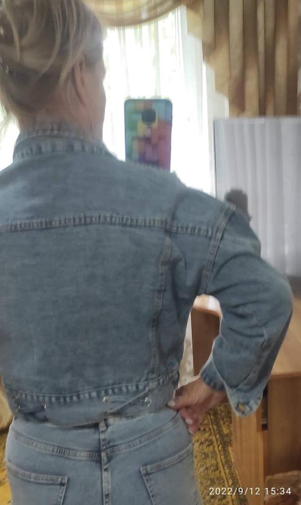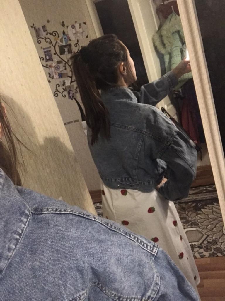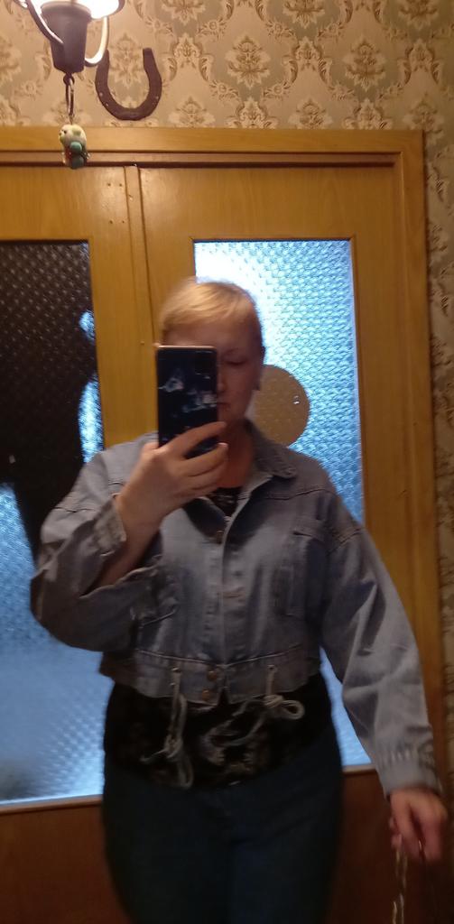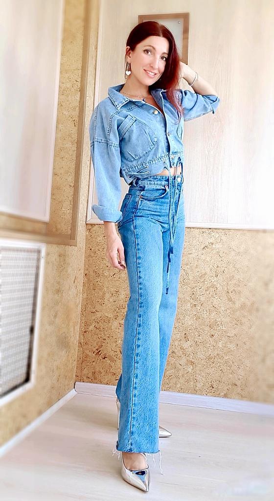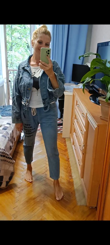 Nice fashionable denim, cropped. I took L and it sits very loosely at 90-70-90, like Overseas, I like it. You can also wear it over a sweatshirt or sweater, it wonβt be too tight. The jeans are thin. The smell is strong, I hope it goes away after washing