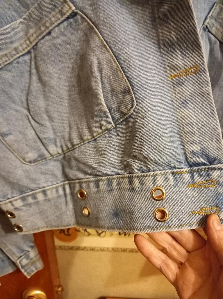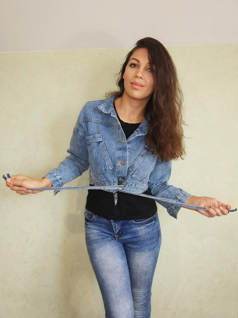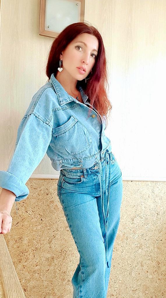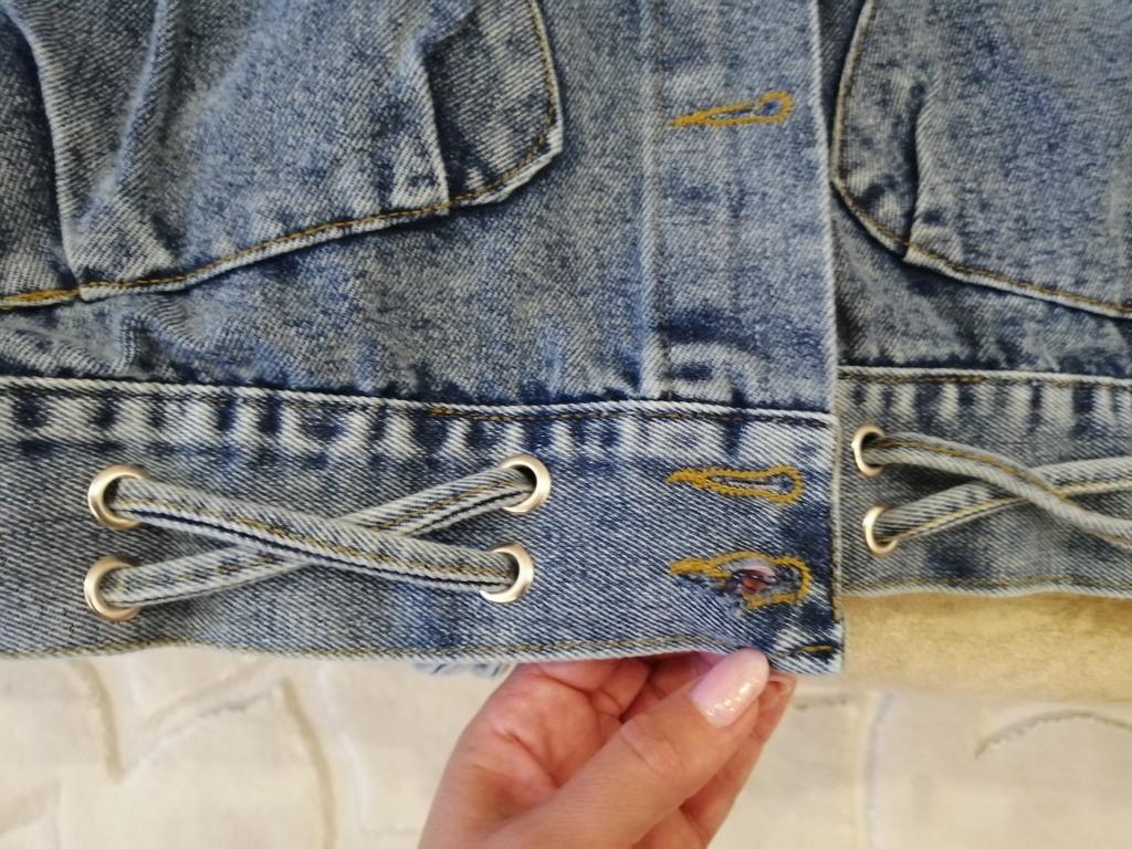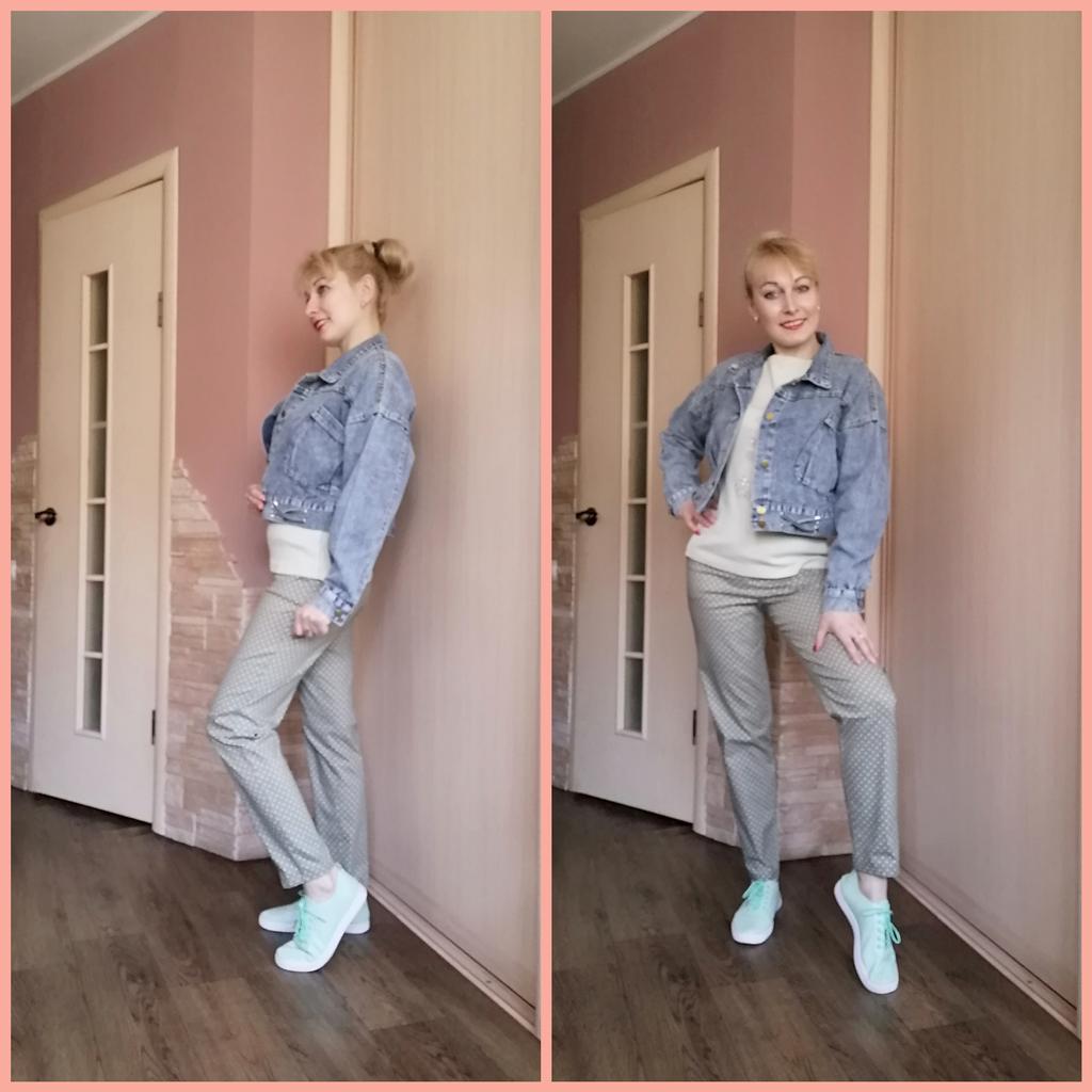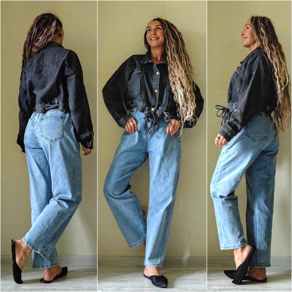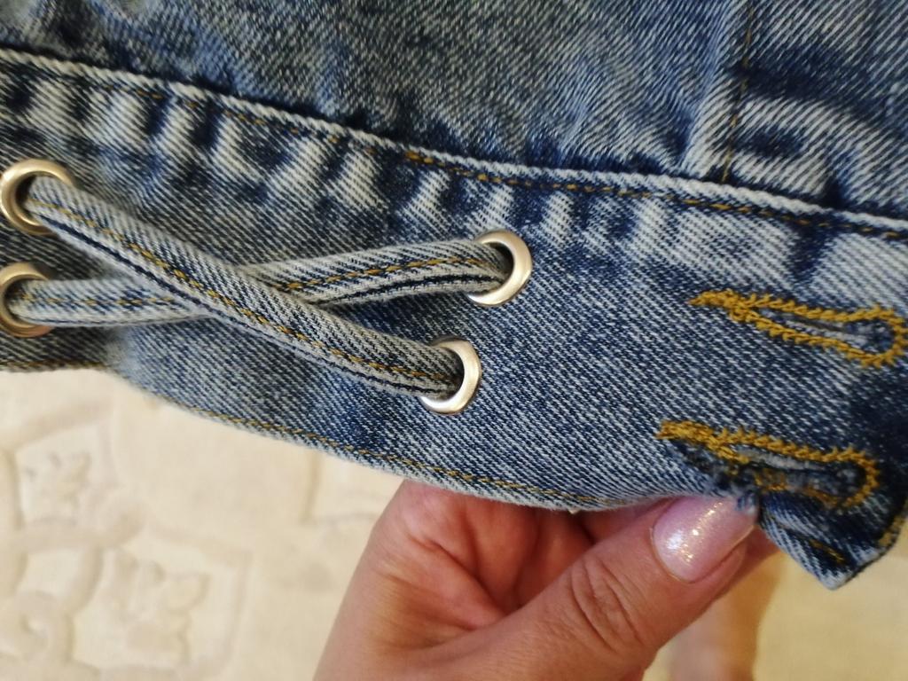 Nice fashionable denim, cropped. I took L and it sits very loosely at 90-70-90, like Overseas, I like it. You can also wear it over a sweatshirt or sweater, it wonβt be too tight. The jeans are thin. The smell is strong, I hope it goes away after washing