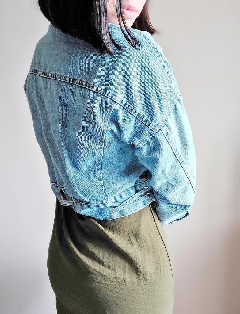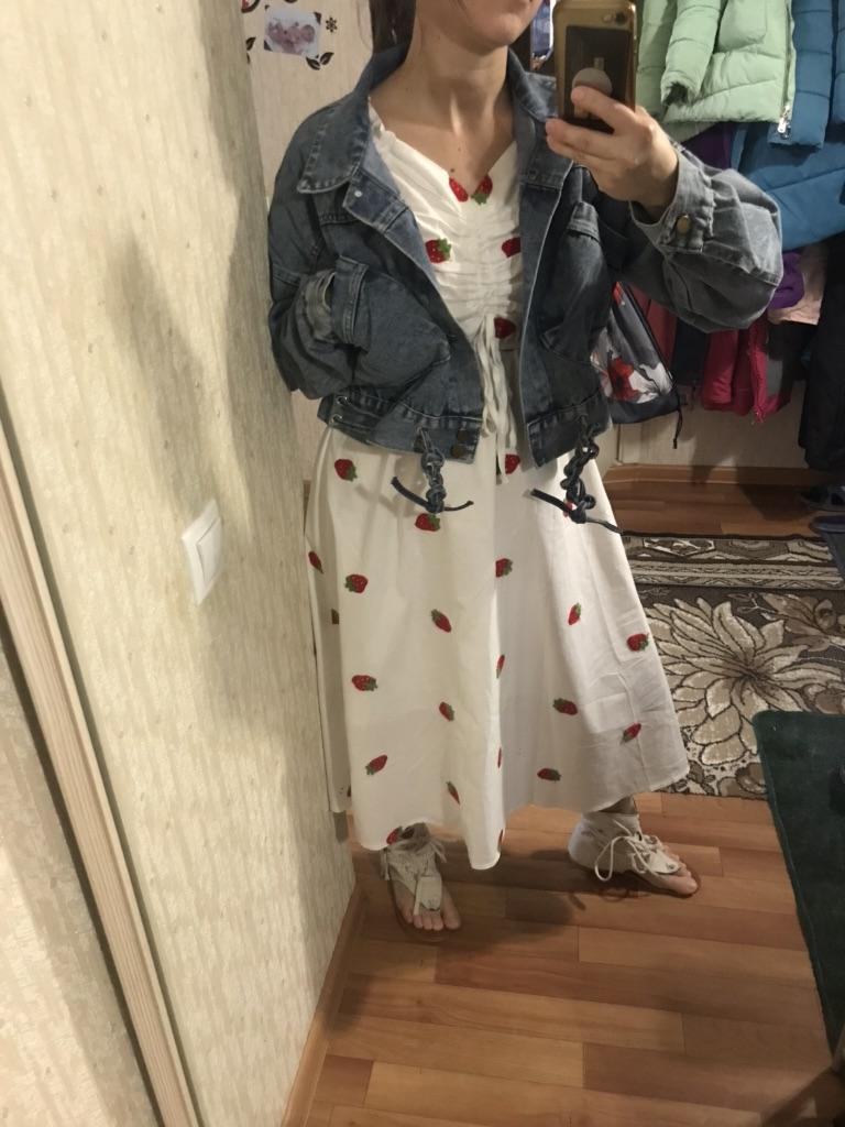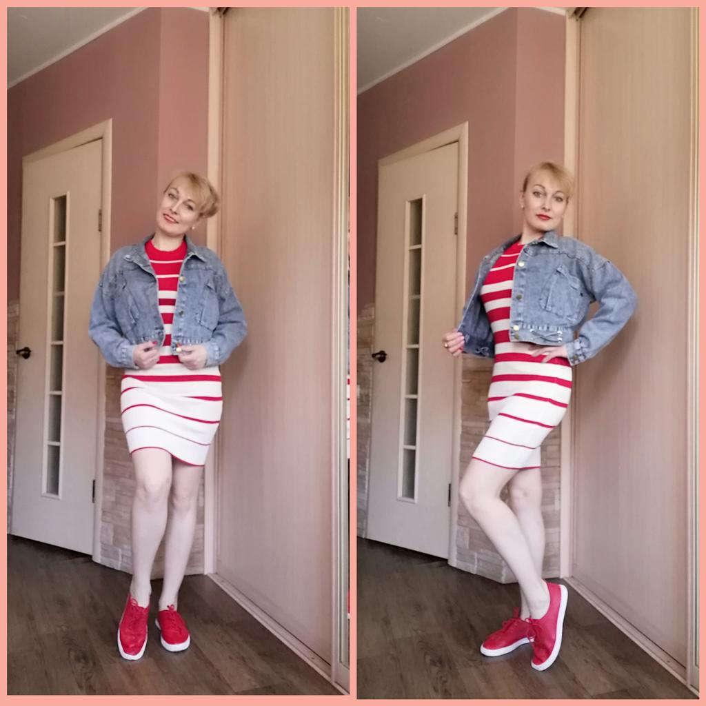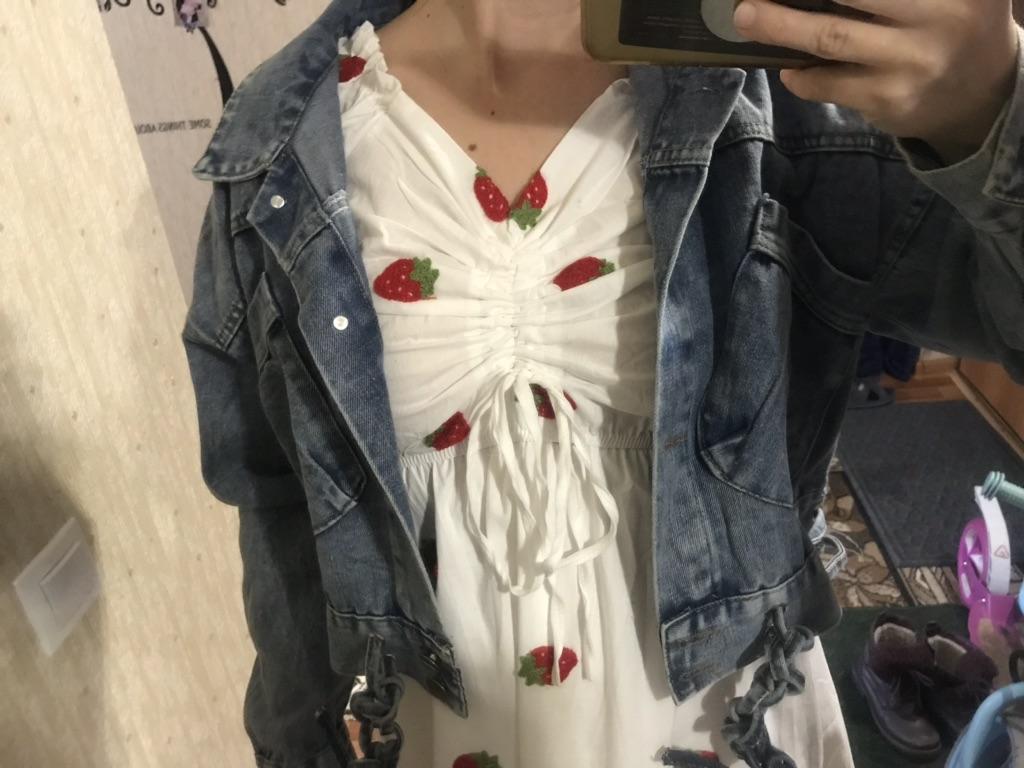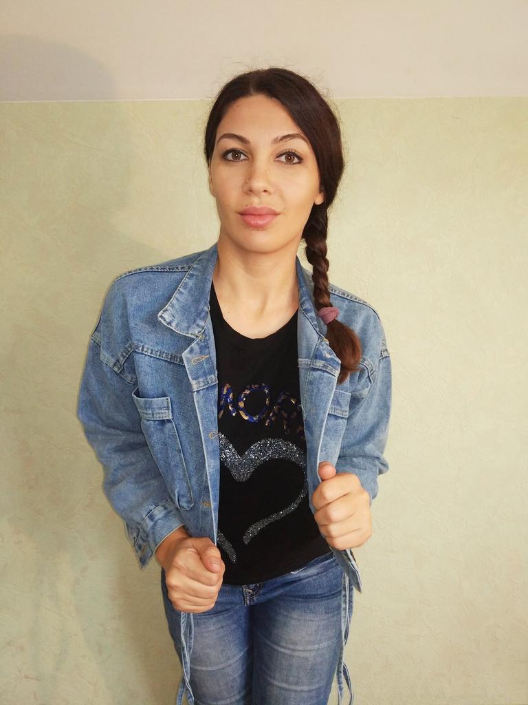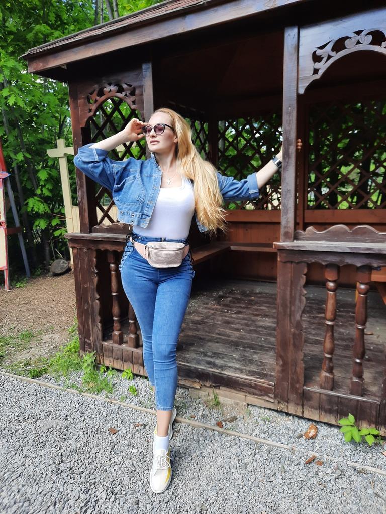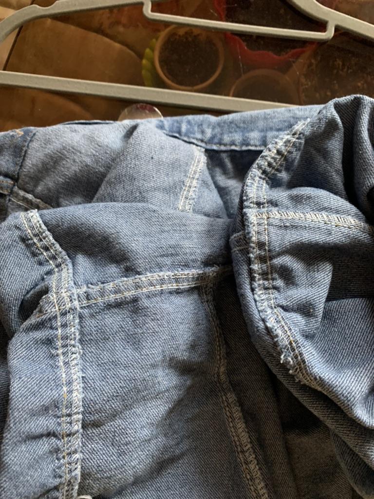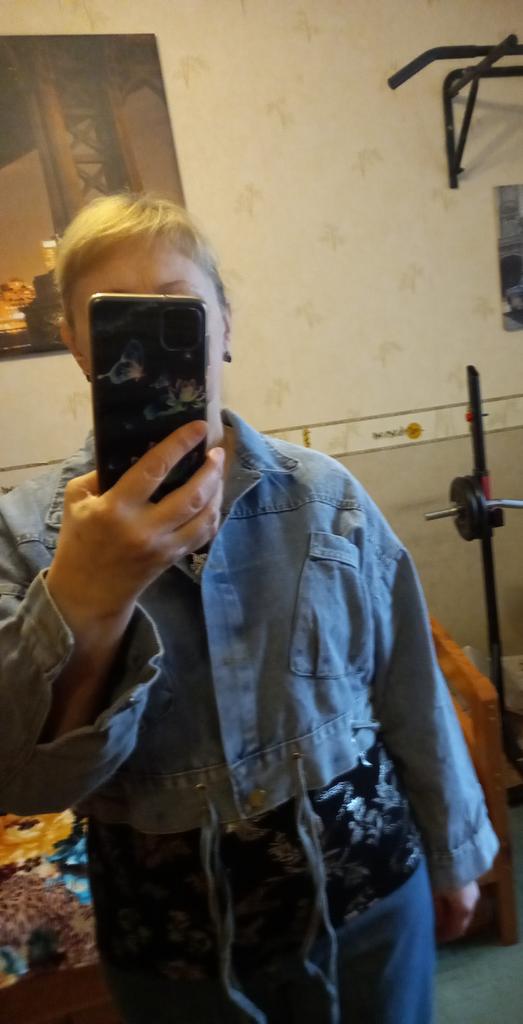 Nice fashionable denim, cropped. I took L and it sits very loosely at 90-70-90, like Overseas, I like it. You can also wear it over a sweatshirt or sweater, it wonβt be too tight. The jeans are thin. The smell is strong, I hope it goes away after washing