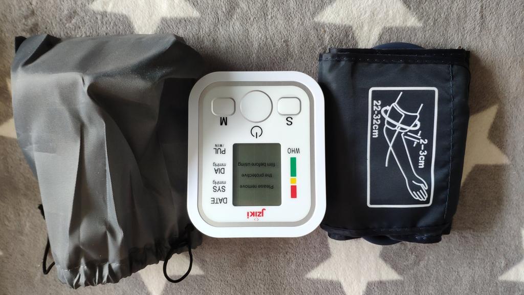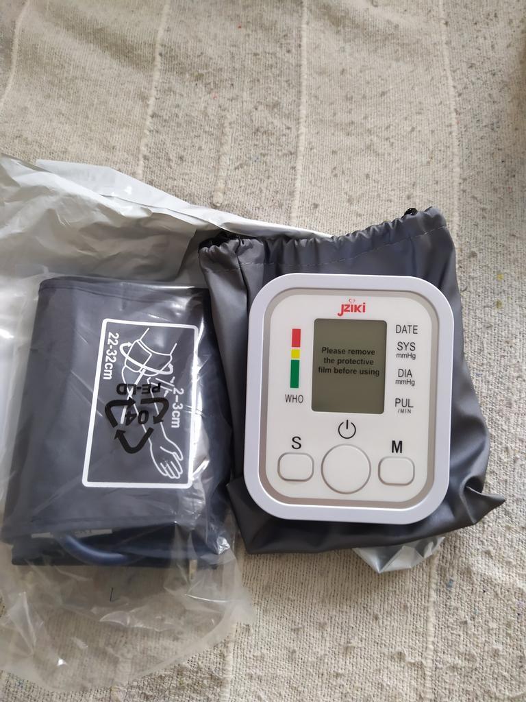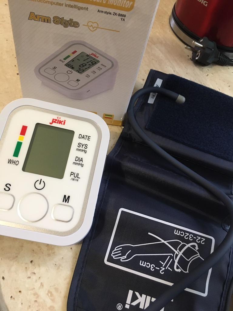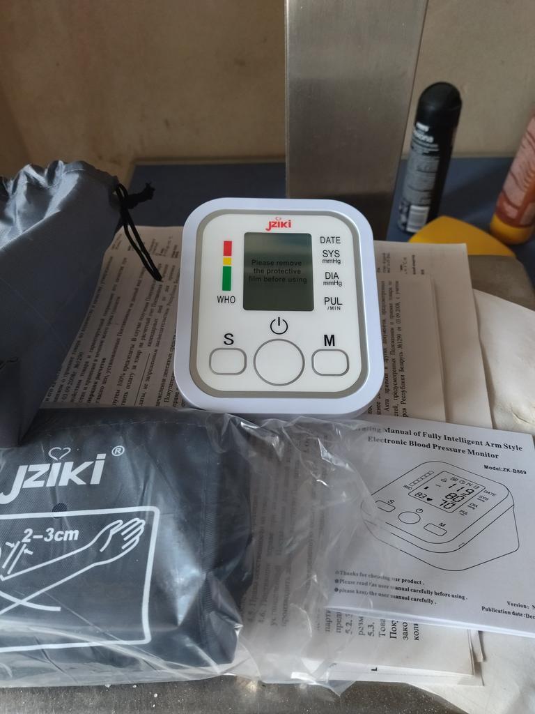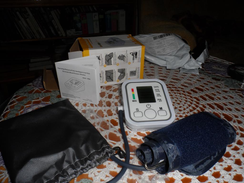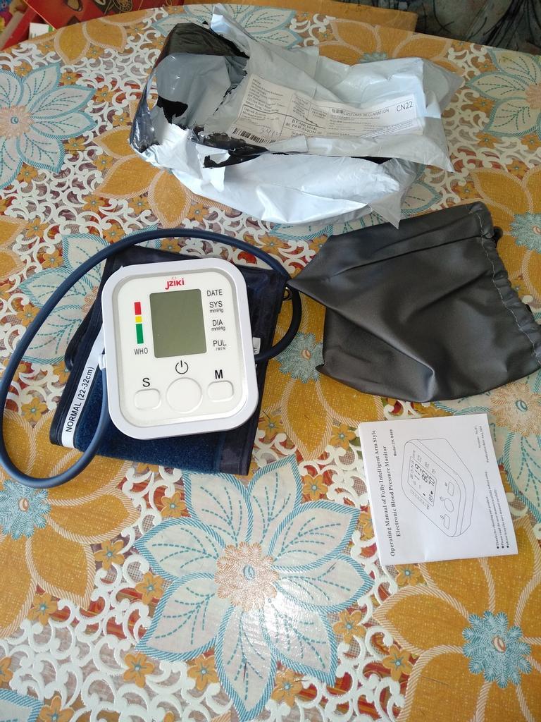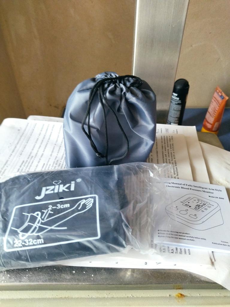Good device, works very quietly. The person sitting next to you does not even hear when the air is gaining. From batteries so far did not try to connect, and from the charger, everything is fine (charger and batteries are not included). Connection of an overlay on a hand plastic. The block is packed in a fabric bag on a puff, an overlay on a hand - in polyethylene. There is a voiceover of the results in English. I do not know if you can turn it off)