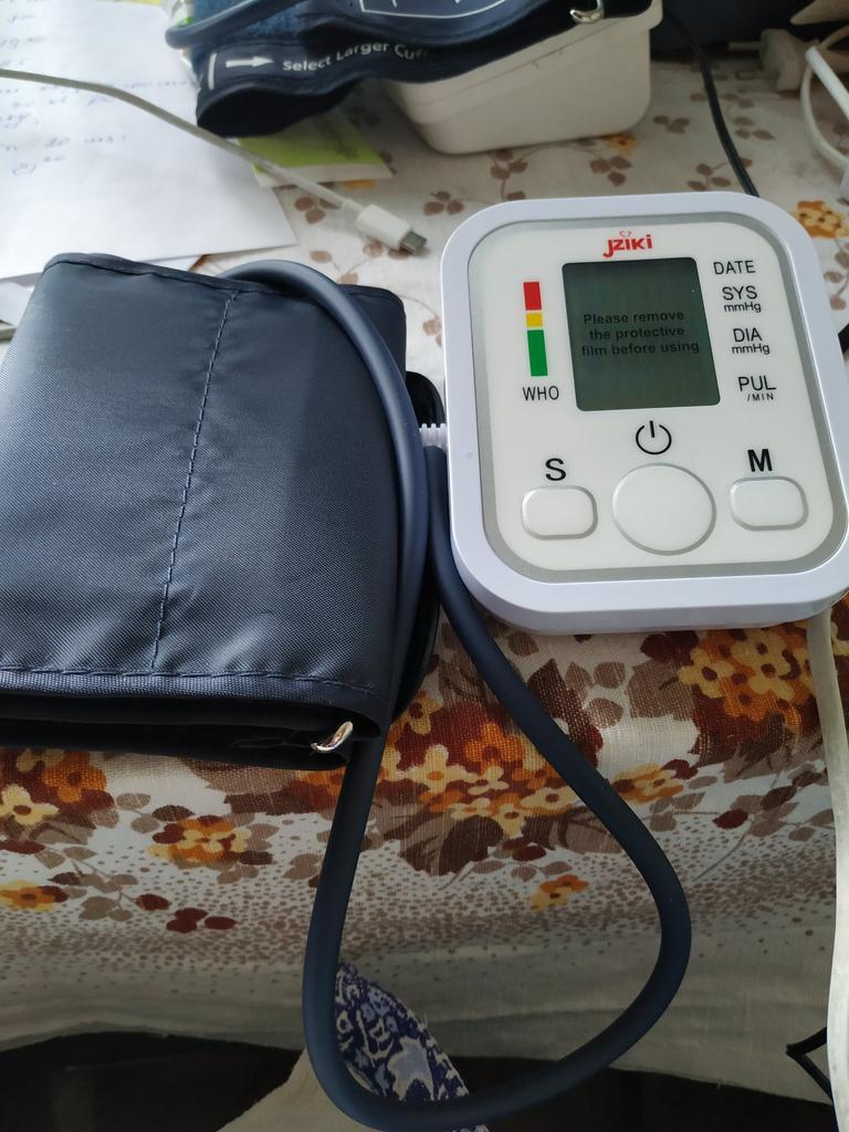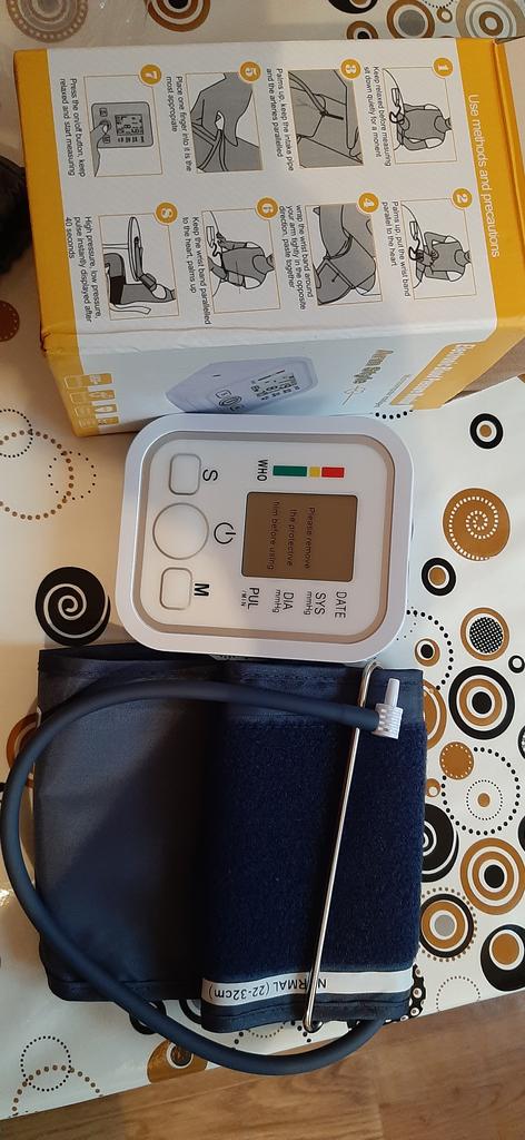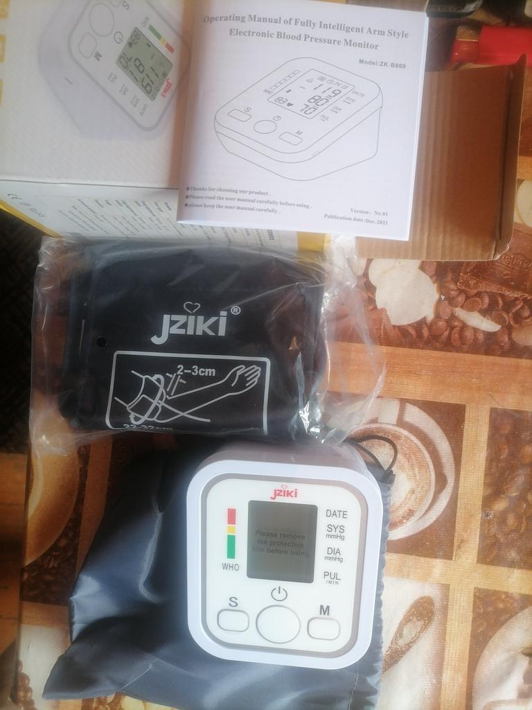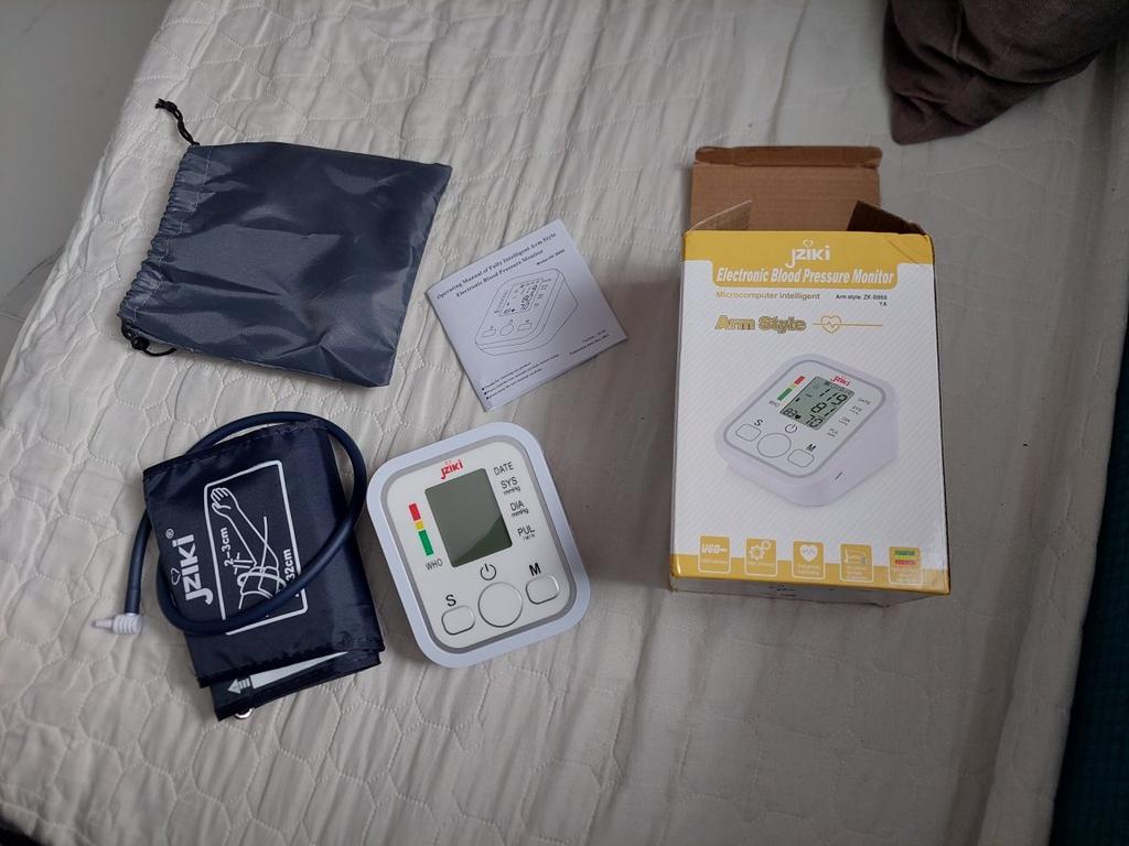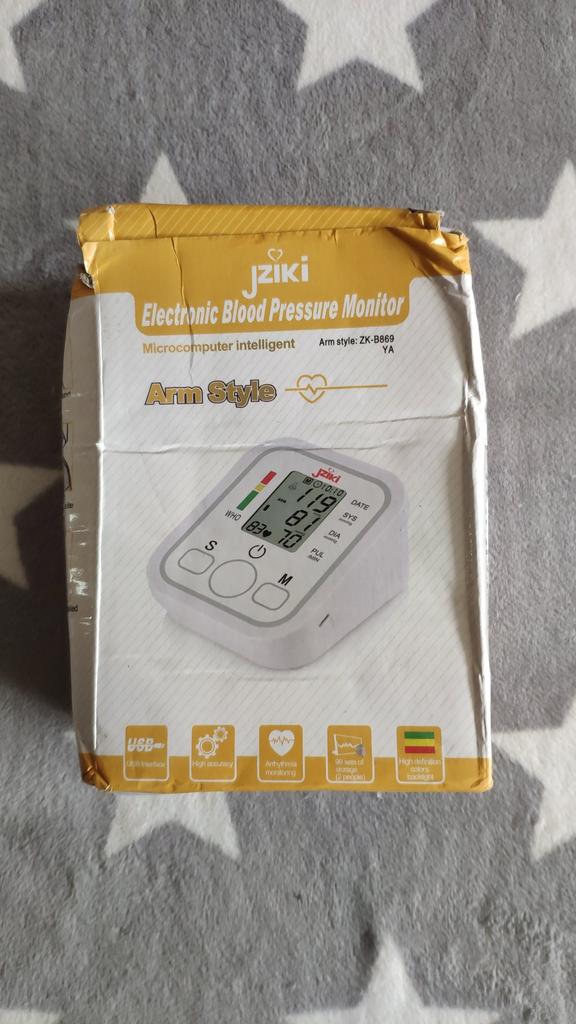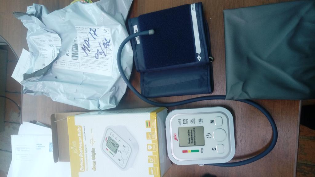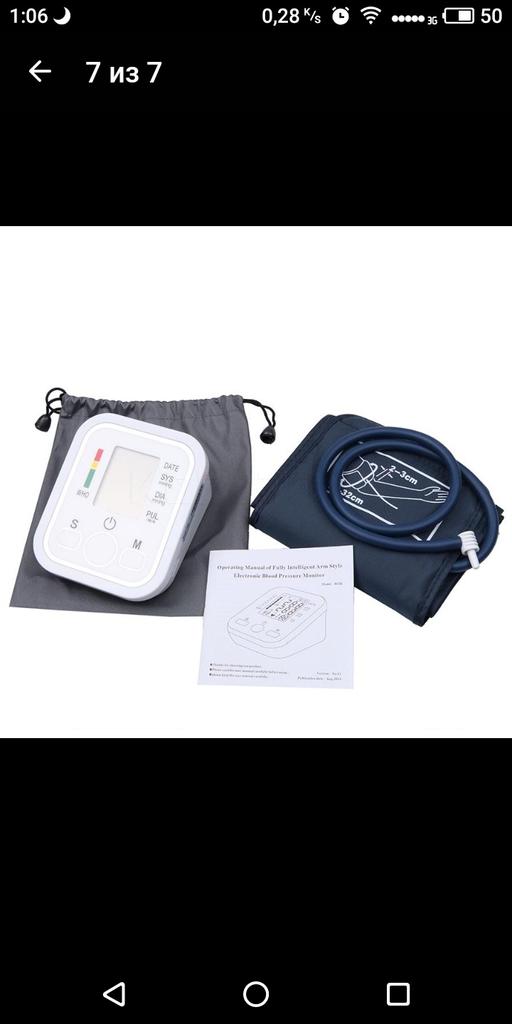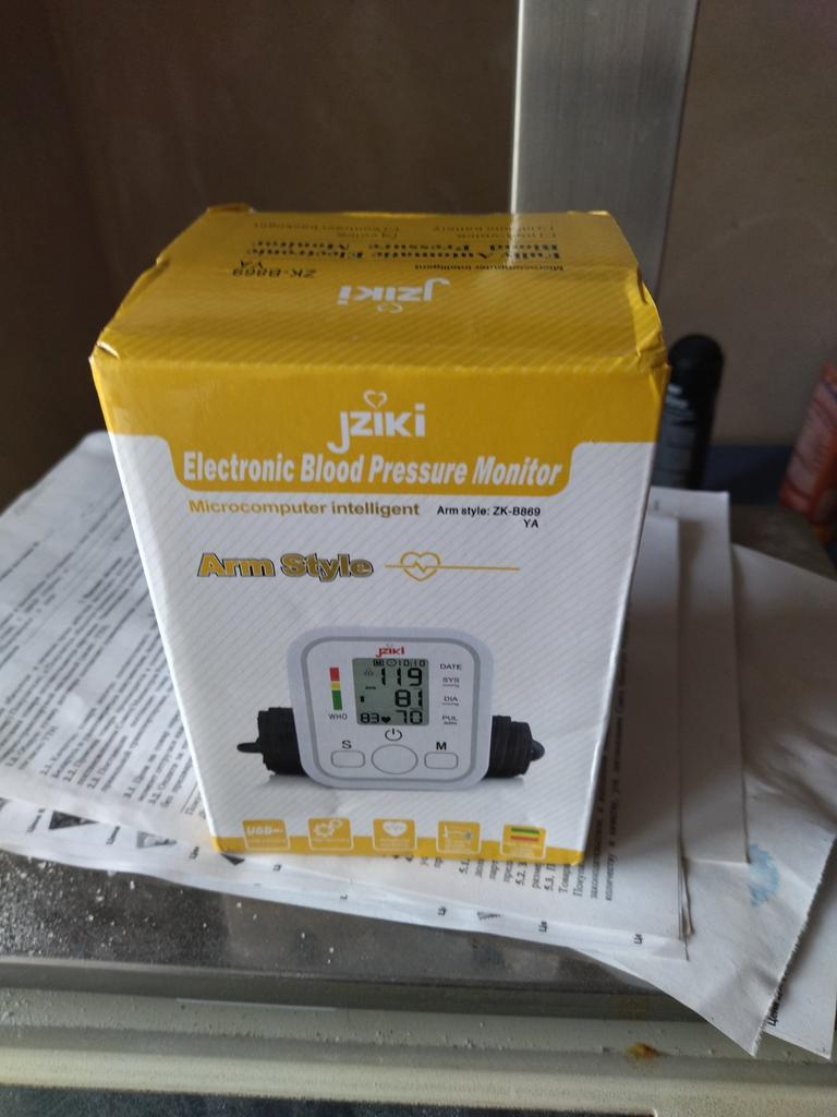 Good device, works very quietly. The person sitting next to you does not even hear when the air is gaining. From batteries so far did not try to connect, and from the charger, everything is fine (charger and batteries are not included). Connection of an overlay on a hand plastic. The block is packed in a fabric bag on a puff, an overlay on a hand - in polyethylene. There is a voiceover of the results in English. I do not know if you can turn it off)