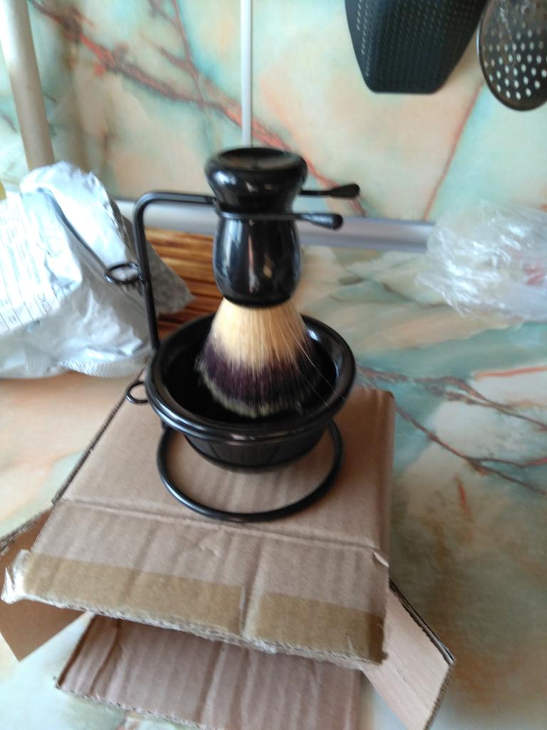 Convenient set. The bristles on the shaving brush are a bit hard, but I think they will become softer later.
