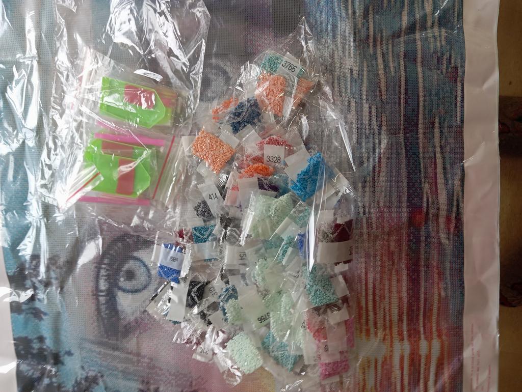 The product was received in a complete set. There are 4 trays and 4 pens in the set, because the picture is big 80*90. There are a lot of bags with rhinestones, I hope that's enough.