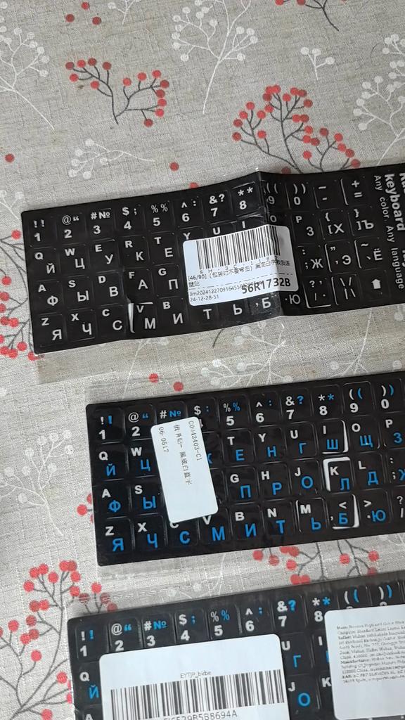 The adhesion quality is terrible! At first, everything seemed fine: I thoroughly degreased the keyboard keys, applied the stickers. But after applying a silicone overlay on top of the keyboard and working on the computer for a short time, almost all the letters peeled off. The material is rather rigid and not plastic. I would even say - elastic: the sticker on a slightly concave surface of the key tries to return to its natural state - that is, to become completely flat, and due to this, it constantly peels off, even after periodic constant pressing of the sticker onto the button. I do not recommend it. It is better to buy stickers from our domestic Ukrainian manufacturer. No offense!