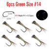 Bimoo 6pcs Black Tungsten Head Fluorescent Orange Pink Green Jig Fly Euro Nymph Perdigon Nymphs Fast Sinking Trout Fishing Lure