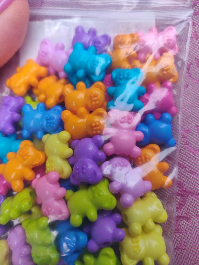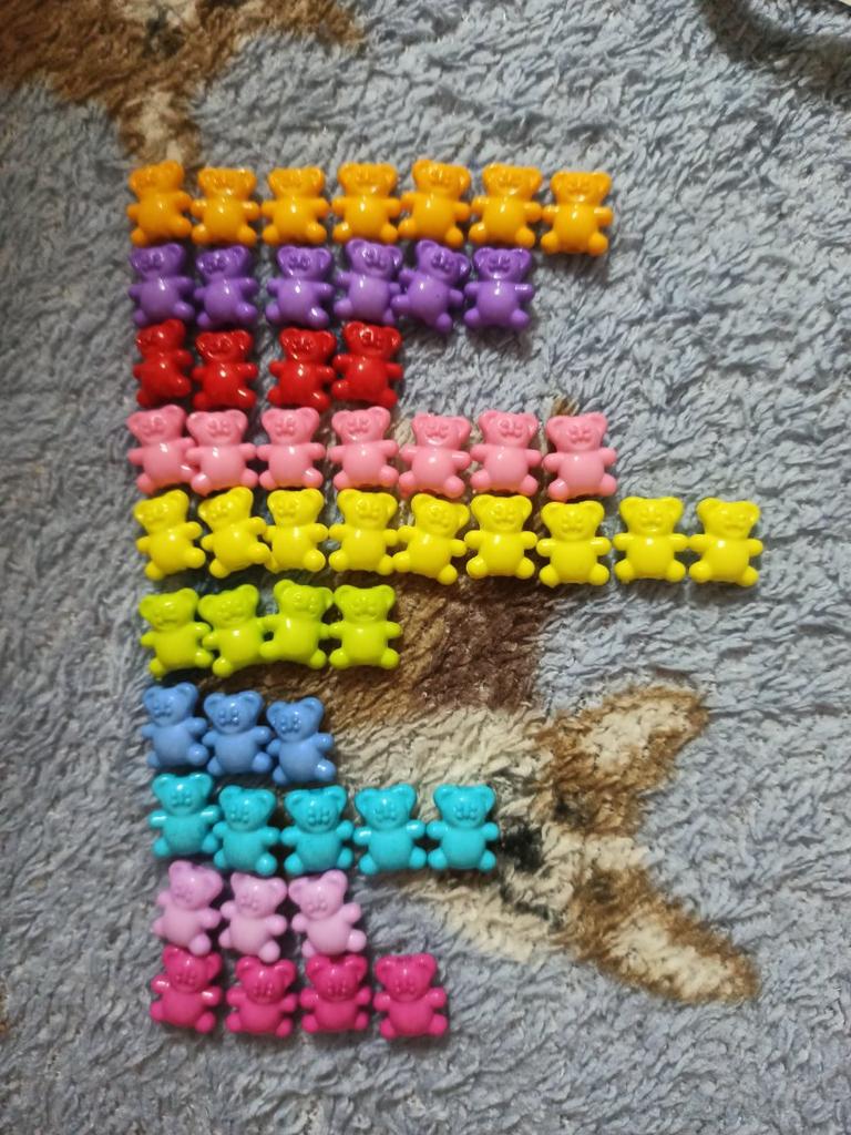 I received the package. 51 teddy bears - nice. One remark - at least the approximate number of colors. All colors 9. 4 Colors - 8 pcs. Blue - 3 pieces, orange - 2. And 4-5 others This is a minus