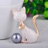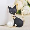 New Lovely Bow Knot Cat Shape Brooches Gray Simulated Pearl Texture Enamel Jewelry For Women Girl Suit Coat Corsage Pins