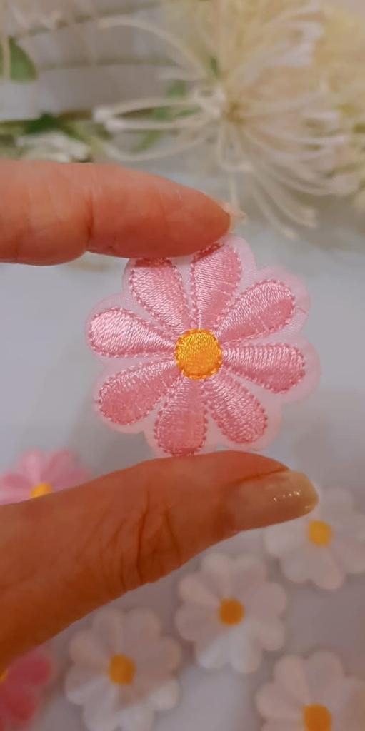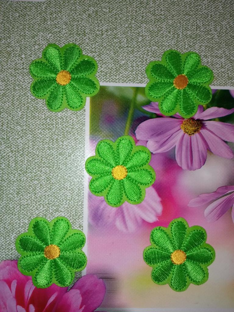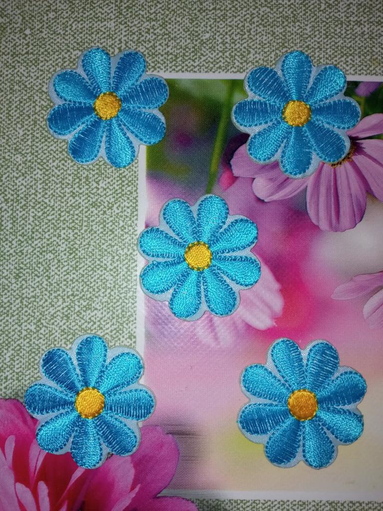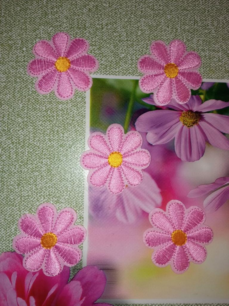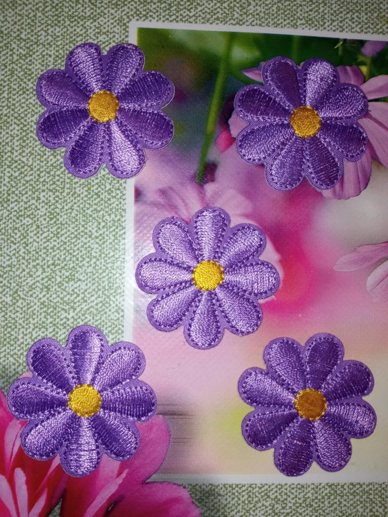 Charming flowers. Size 4 cm. Can be glued or sewn. High-quality embroidery.