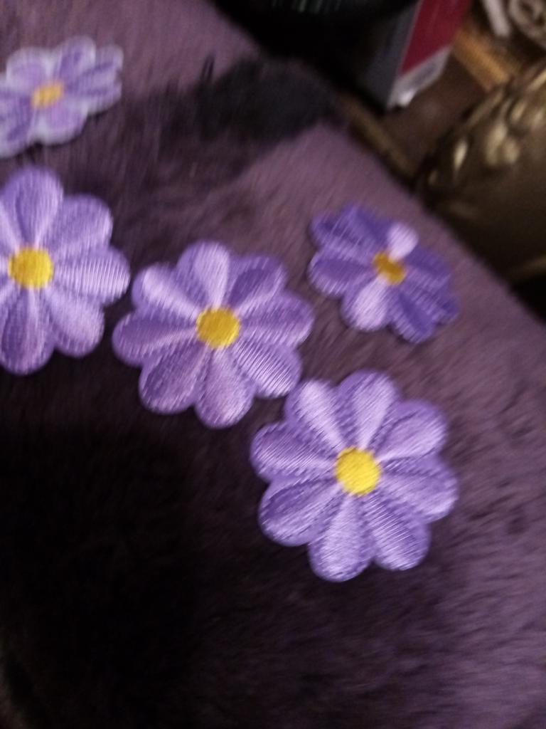 The appliques are cute, they need to be glued with an iron, I ordered these, these are like embroidered with silk, they look great, again, in the same package with another order, they went for ages