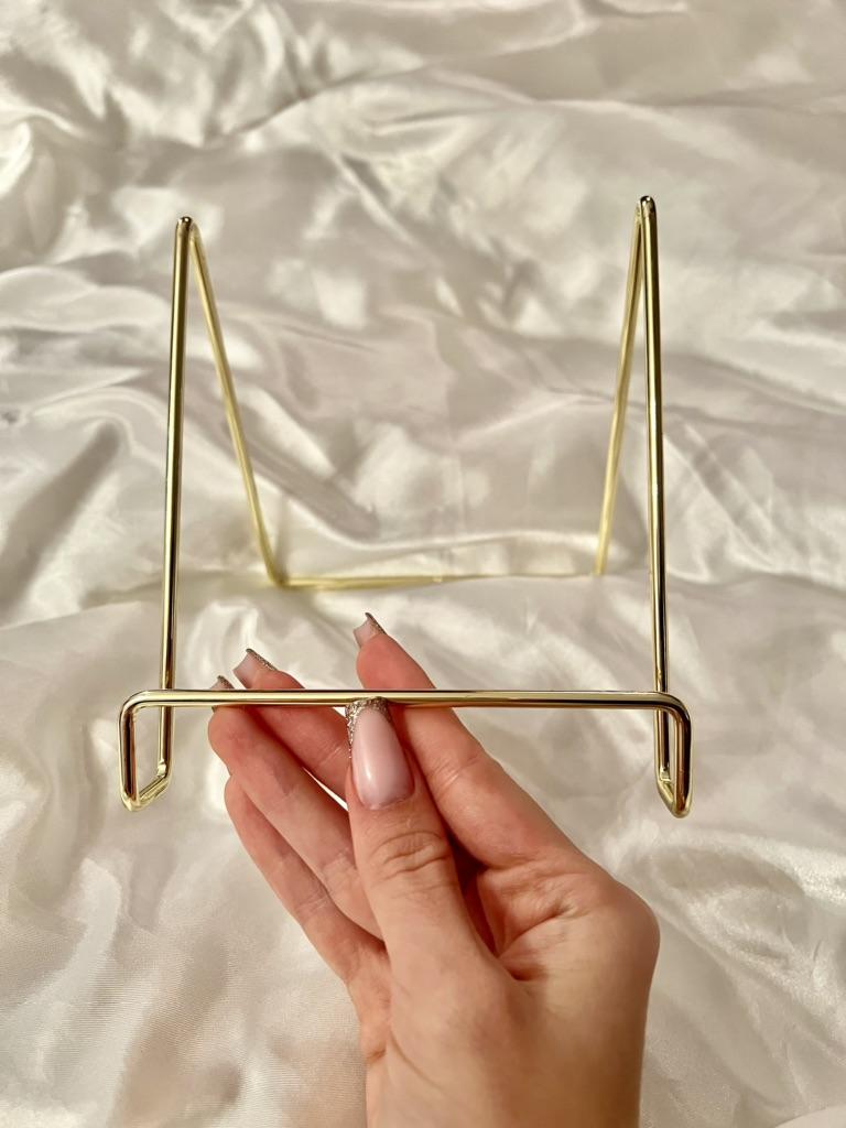 Multi-purpose tool! You can place a book, iPad or photo/diploma etc on it. I personally love it for my iPad. Makes it easy to watch your favorite show in bed without the iPad falling over or being in an uncomfortable position. I was positively surprised in the quality - it's nice and heavy, not plastic. I got mine in gold color, looks lux :)