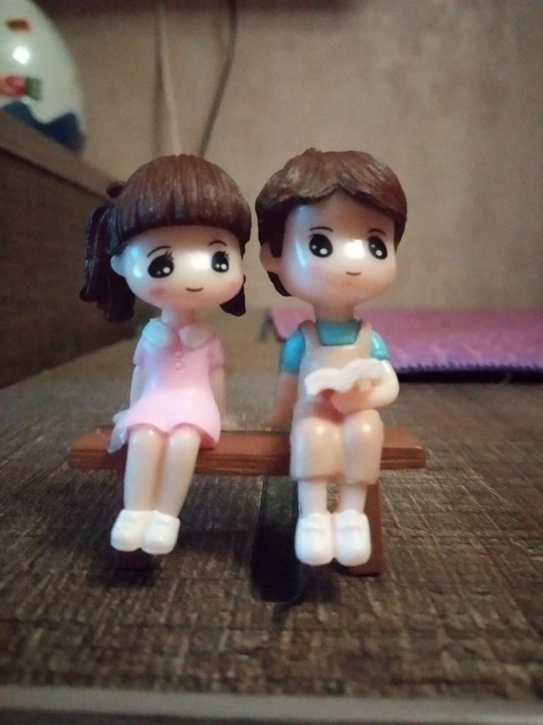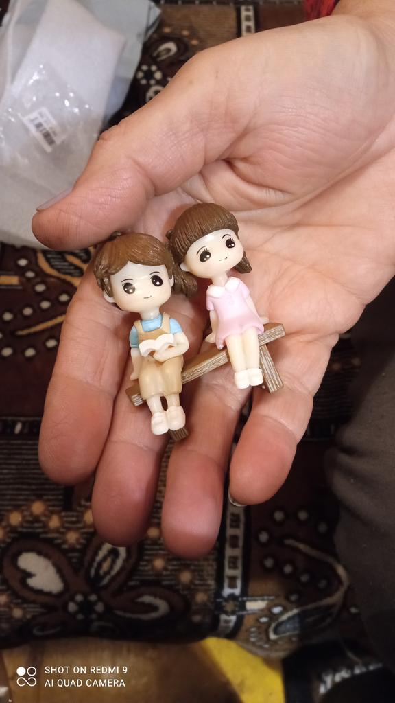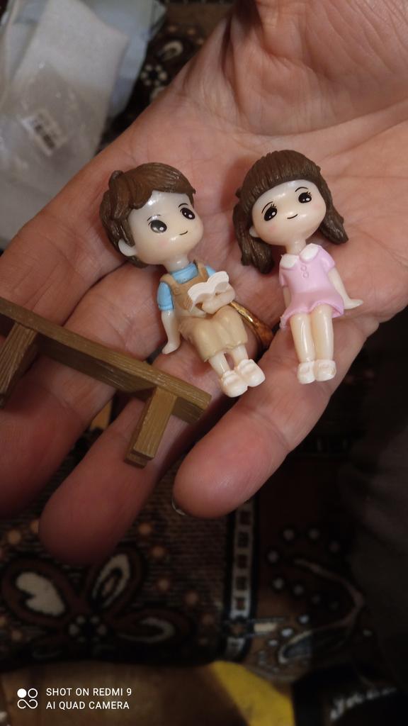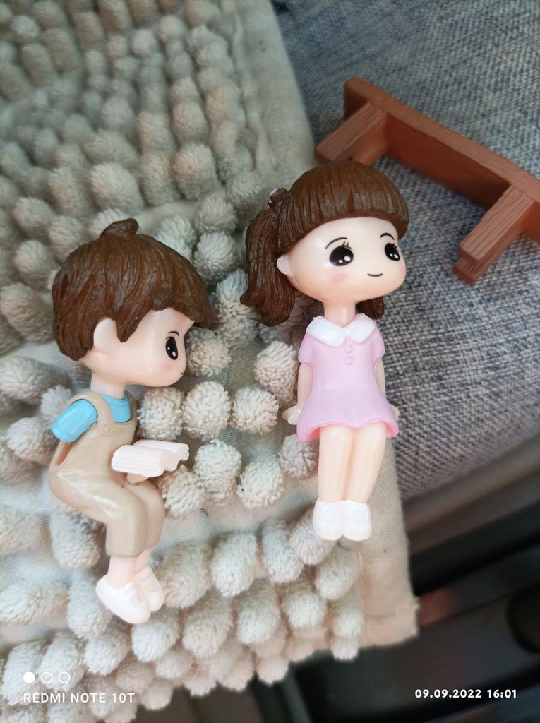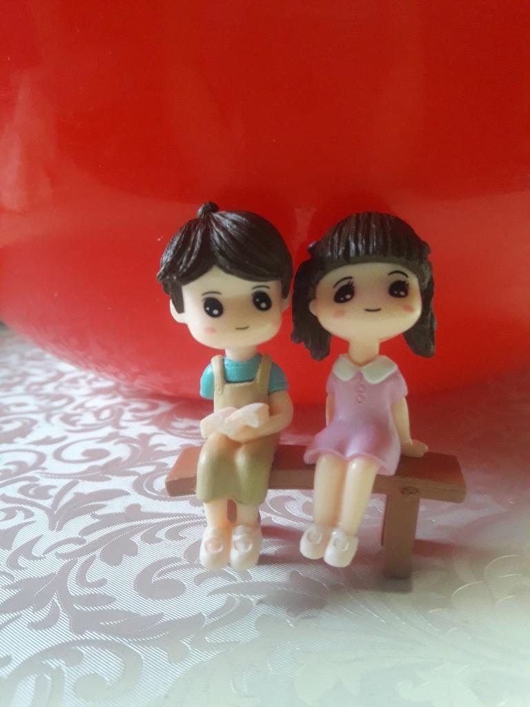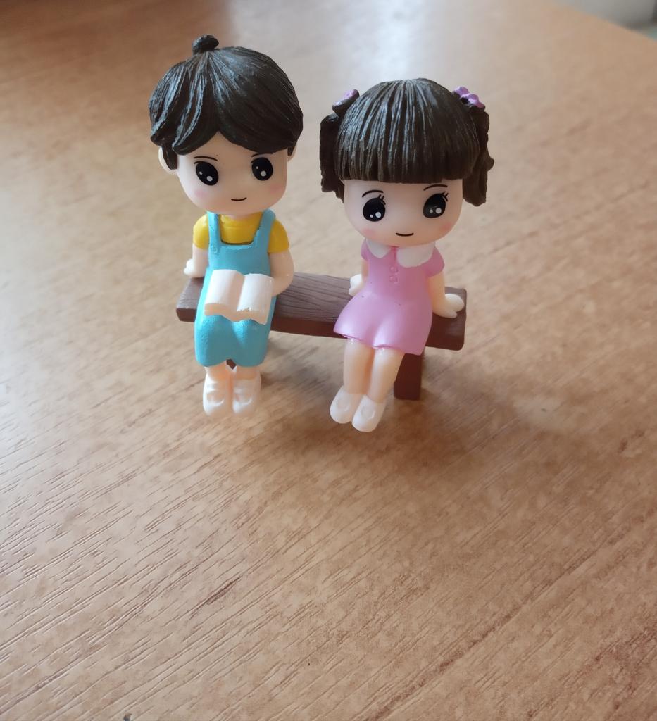 Cute Reading Couple Sitting Bench Model