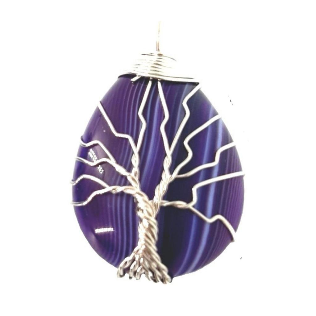 Large drop pendant in purple agate agate wrap wrapping wraping tree of life or tree of life jewel and silver steel + chain - 3.5cm high