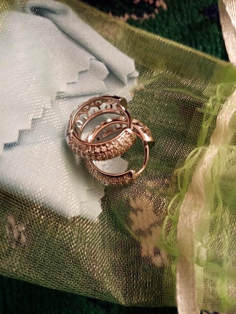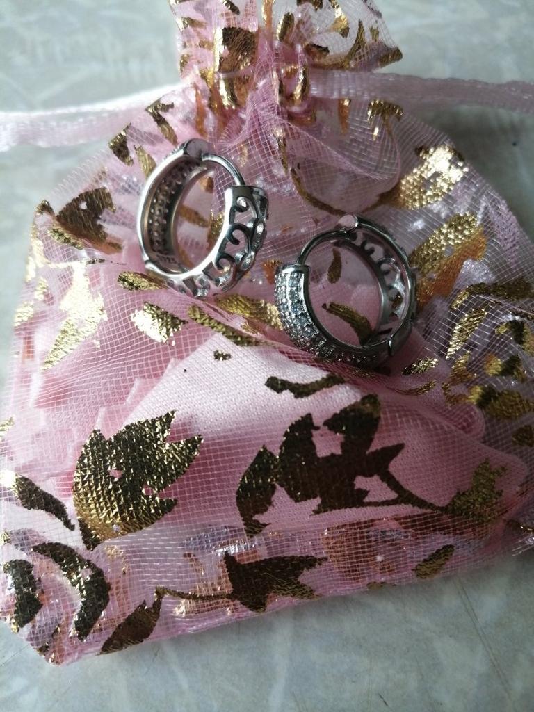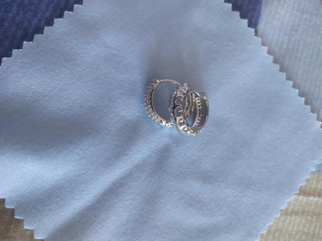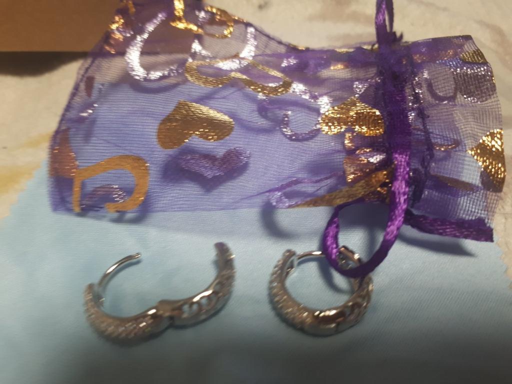 ⭐⭐⭐⭐⭐ Silver colored hoop earrings with rhinestones - Lindon The order was delivered in 20 days as a registered mail and was well packed in a bubble envelope. These are beautiful earrings from the brand "Lindon" made of 925 silver. The earrings are made of sterling silver and are very filigree. The stones are all very sharp-edged and sparkle very nicely. There is a nice hole pattern in the metal on the back. They are closed with a click mechanism. These earrings also look very pretty and I am very satisfied. I would be happy to recommend both the product and the seller. Instagram : mad_lammy Twitter : SandraAust4