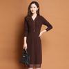 SCIONE Lace V-neck Sweater Skirt Temperament Mid-length Slim Bottom Skirt All-match Knitted Dress Women
