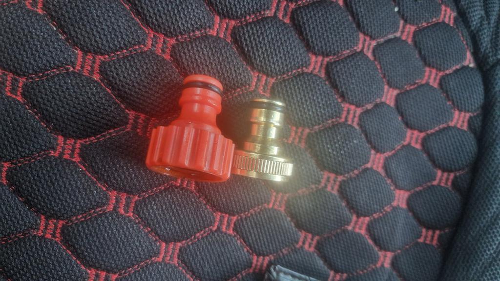 Adapter for quick release, screwed onto the tap, metal. I recommend.