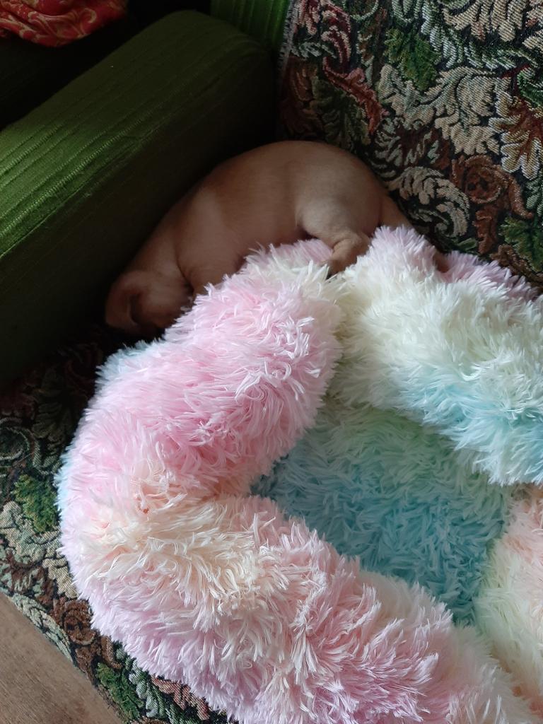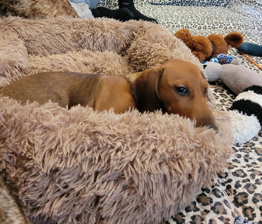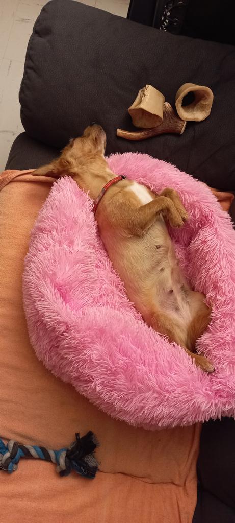 The bed is cozy, but doesn't look as good as in the pictures. It “falls apart” and is not that soft. I'll probably put some foam at least 5-10 cm thick underneath so that my animals really like it. They're not interested in it yet.... 🙈 1x sniff and done...... 😵