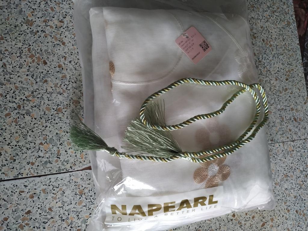 How cute, inside the package there were small decorative ties for each curtain, free of charge. Nice item and corresponding to the description. Thank you!