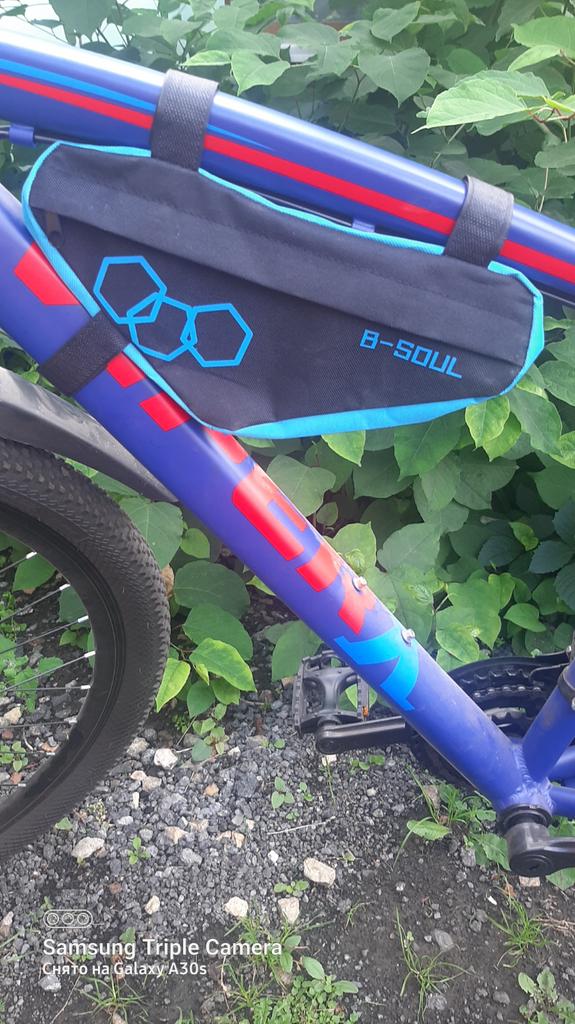 Good day everyone! This review is about a bicycle bag. It's a great under-the-bar bag. I bought it to carry my cellphone and bike essentials. It has exceeded my expectations because it is made of a strong fabric and is also very light. It is easy to confirm. The item was packed normally. Pros: + good price + good quality Negatives: - shipping took 5 weeks The material is Oxford. It is of good quality. This style is very nice for a sporty bike. Available in three colours! I am very happy with the purchase, and recommend it to anyone who is looking for a handy bicycle bag for bicycle tools, etc.. š²