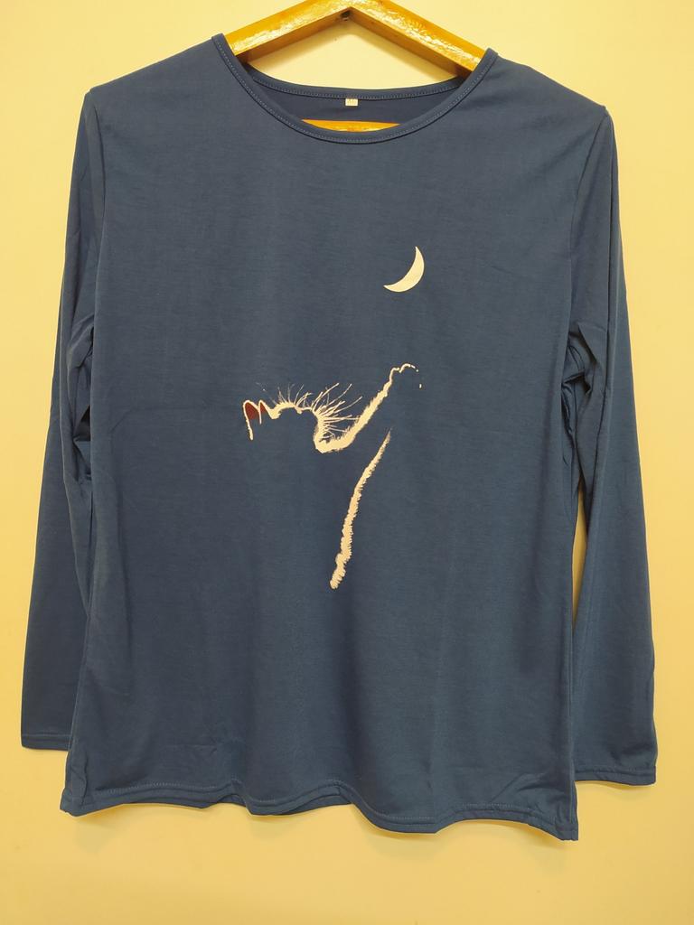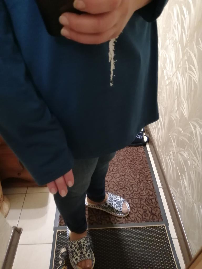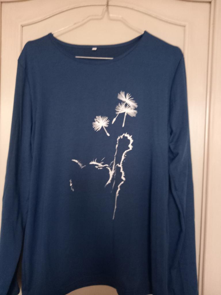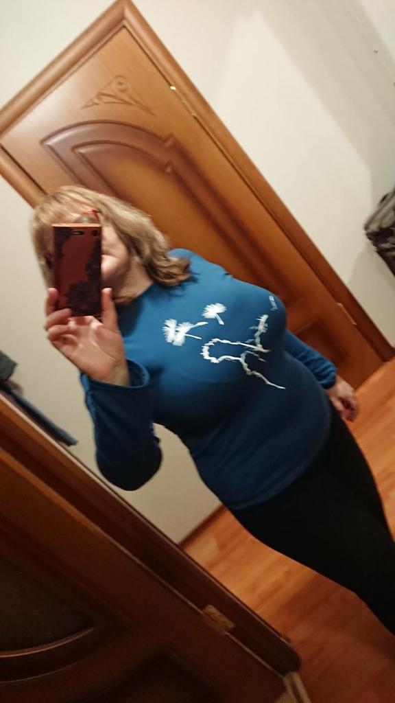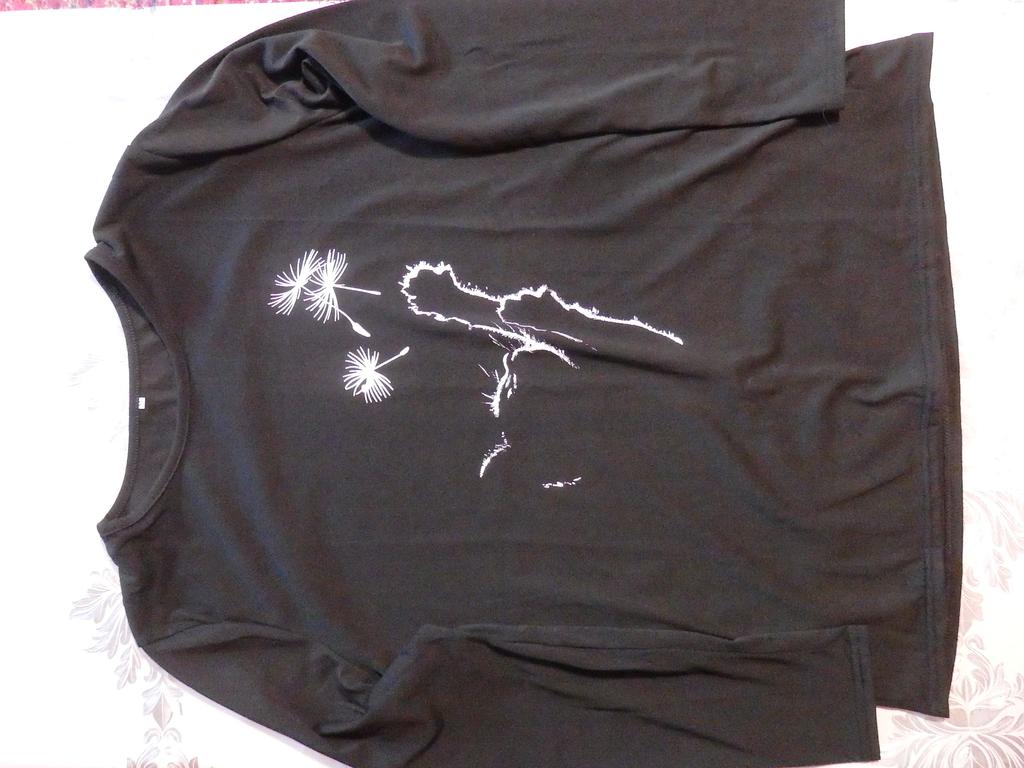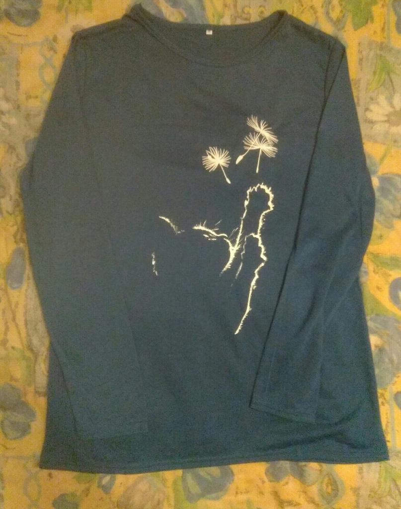 A simple long-sleeved T-shirt. But thanks to the print it is quite suitable for everyday work. Cozy, nice, comfortable