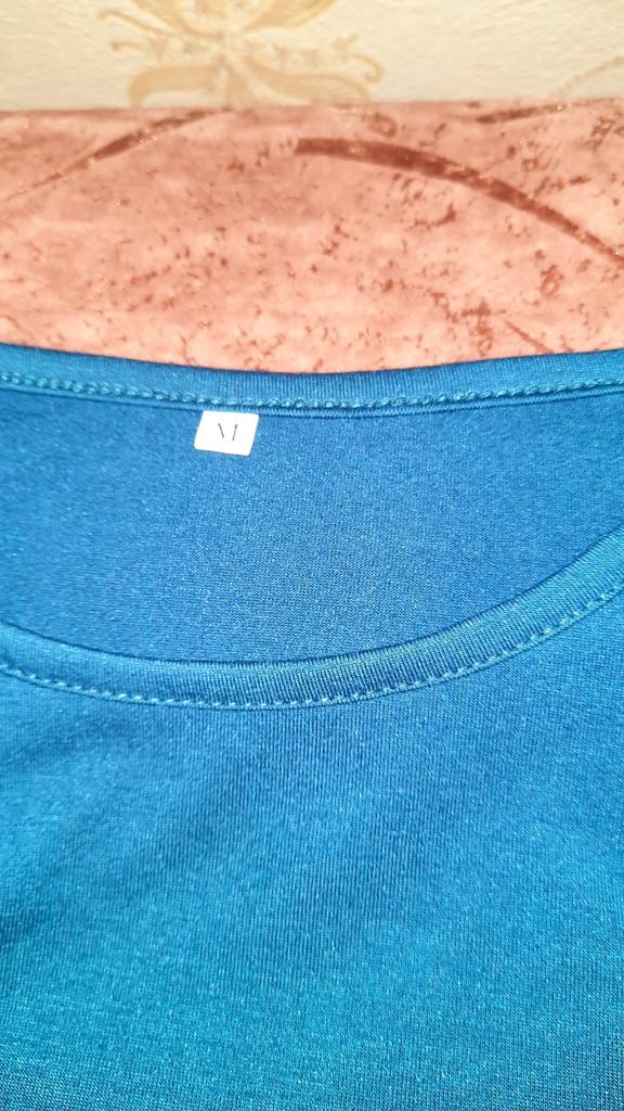 Pleasant material, large neckline, looks different in the picture, smaller, while it's loose in the chest