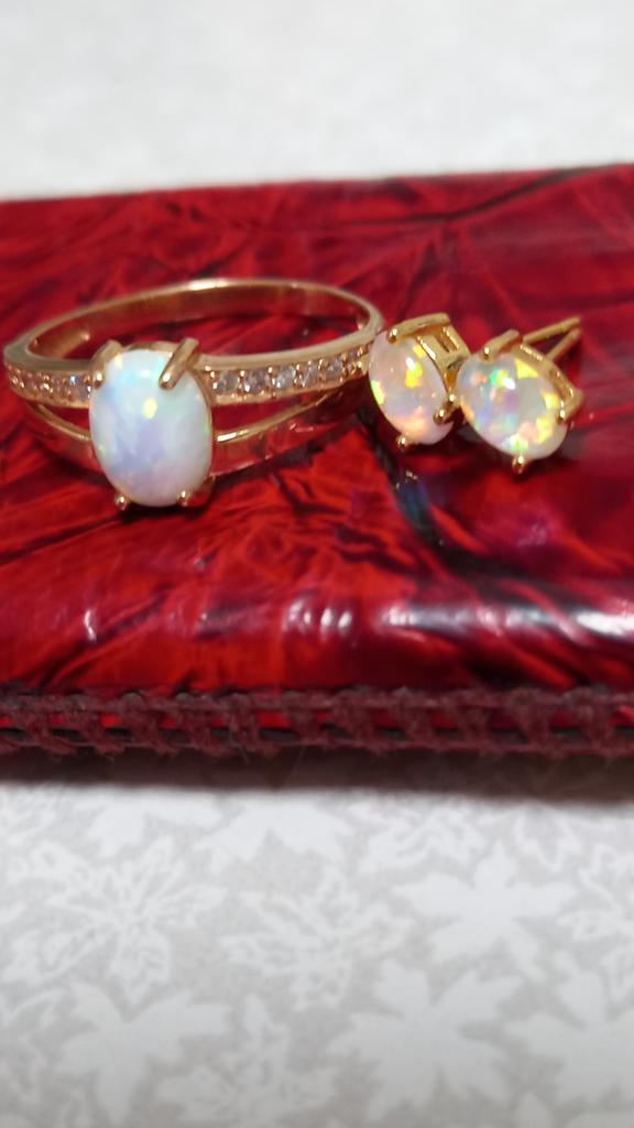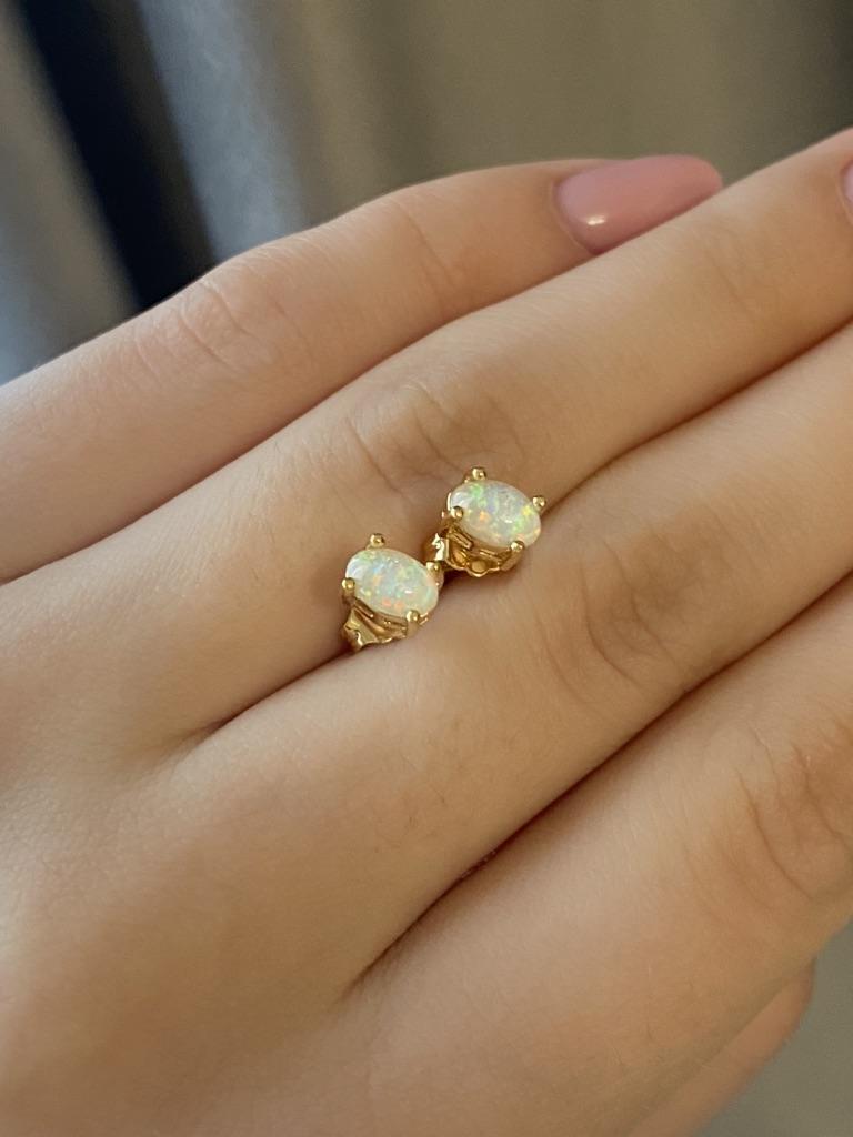 Women's Fashion Oval White/Blue Opals Charming Stud Earrings