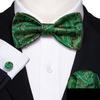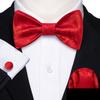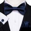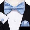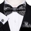 Barry.Wang Mens Self Bow Tie Hanky Cufflinks Black Yellow Ivory Butterfly Bowtie Set