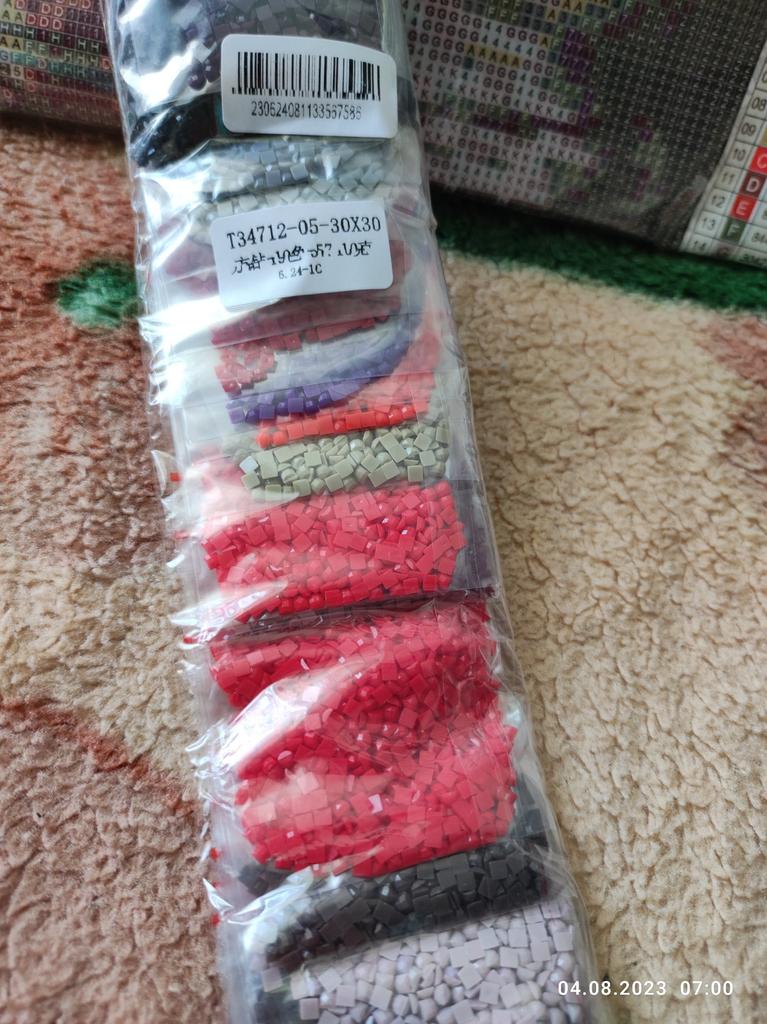 Beautiful picture, unfortunately the stones are of poor quality as they are different sizes and therefore some gaps are visible in the picture. Stones were delivered in resealable bags.