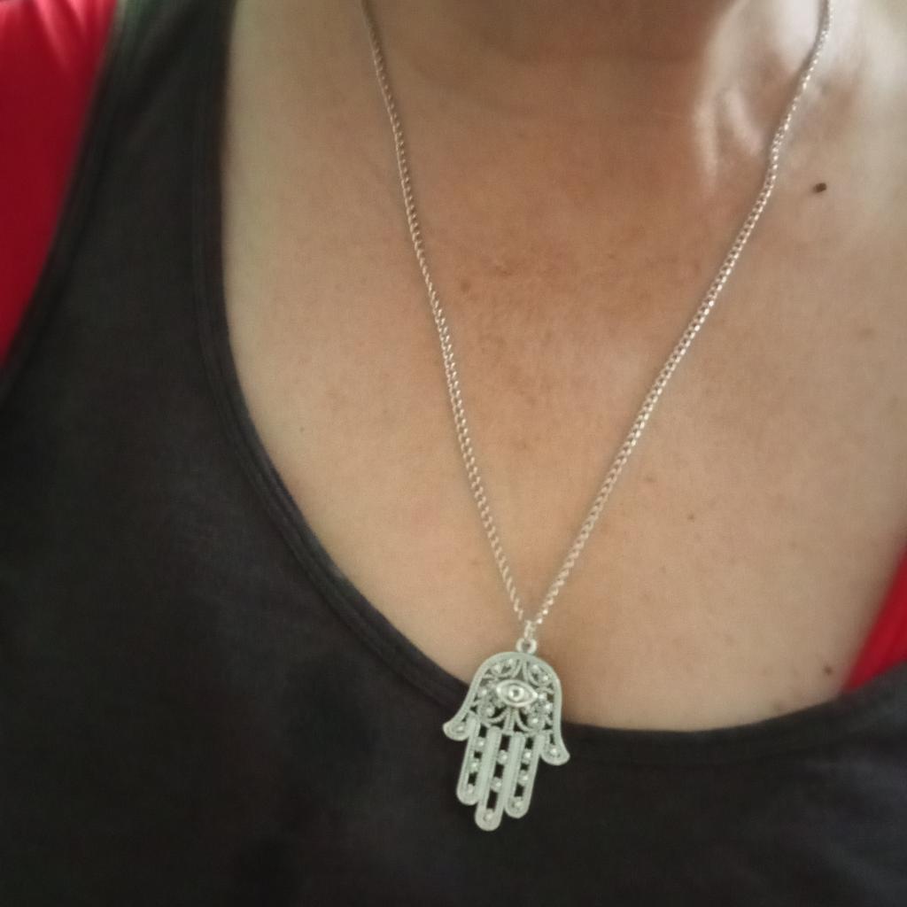 Good Luck Protection Hamsa Symbol Fatima Hand Evil Eye Pendant Chain Necklace