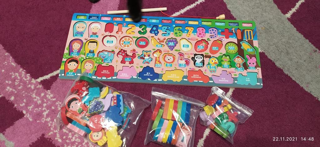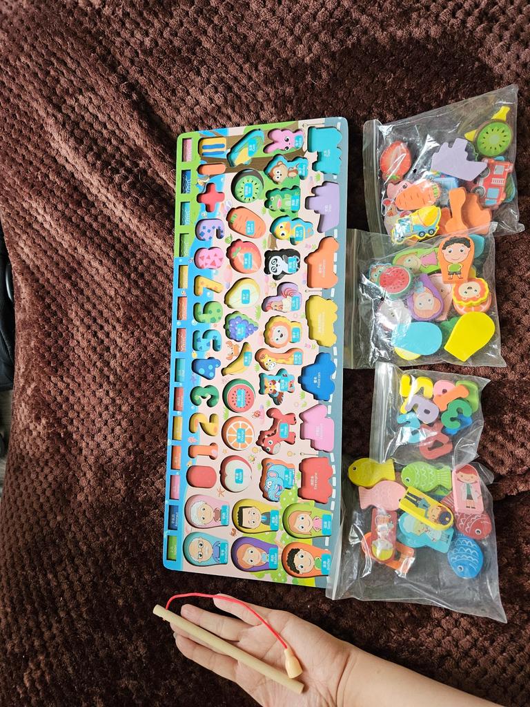 Montessori Wooden Math Toys Children Forest Animals Magnetic Fishing Building Blocks Busy Board Preschool Educational Kids Toys