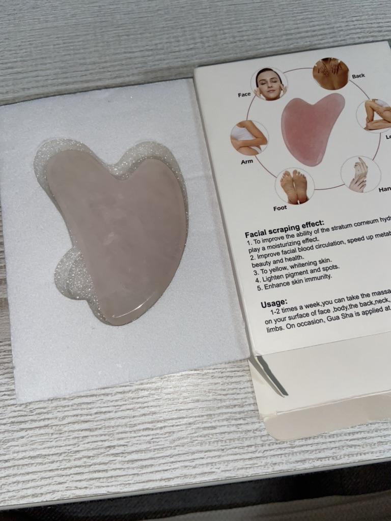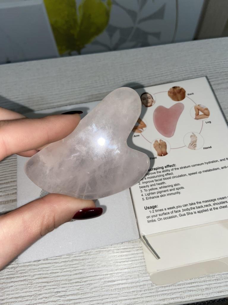 Rose Quartz Gua Sha🙅♀️ I am very disappointed. I've wanted this thing for a long time to massage my face. Unfortunately I can't use it. 😔 The stone is all chipped, cracked and I can't touch my skin with it for fear of cutting myself. The stone was packaged well so it couldn't have been damaged in transit, meaning the seller already packaged it that way. 😢 Pros: the color is very beautiful and you can see that the stone is real. It's just a pity that the workmanship is bad.🥺 I would not recommend this item or the seller. Mary ❤️