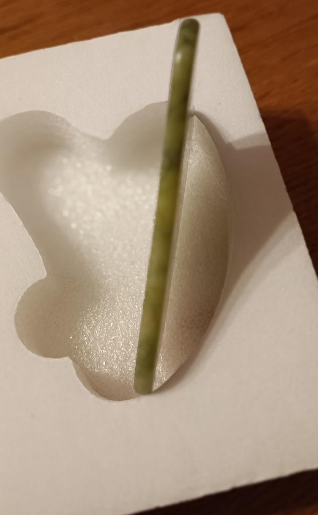 Very happy with the purchase! The stone is natural, cold and pleasant. It was packed very well, in a special box. The shape of the stone is beautiful, the lines are smooth, perfectly polished. I highly recommend this stone.