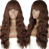 XINRAN Long Water Wave Synthetic Wigs With Bangs Natural Wavy Orange Wig for Women Cosplay Wigs Heat Resistant Fiber Wigs