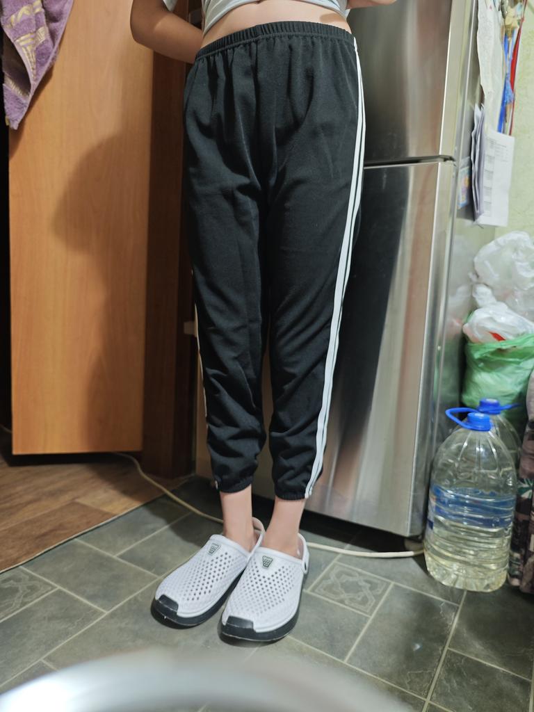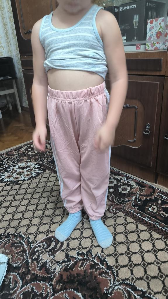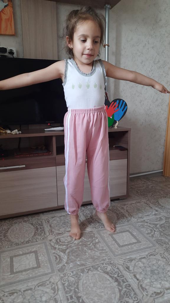 Daughter 123.5 cm. Pants size 140 are just right. The fabric is cool - very thin. We will wear them with pleasure.