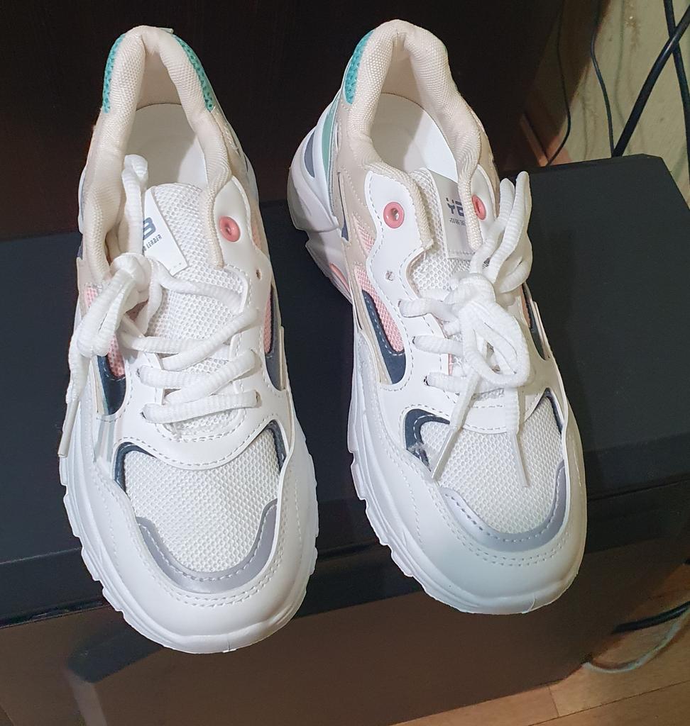 Pros: They are absolutely fabulous!!!! 😁💖😎 I love these cool Korean style sneakers!! They look very trendy. I see a lot of hipster people with these kind of shoes in Holland. So happy with them! 💕🥰 I followed the size table of the seller and they fit perfectly! Usually in Europe I wear size 38, here I bought 2 sizes up, size 40. My feet are 24.5cm. They have a thick rubber sole, which makes walking super comfortable. Mesh and leather on top. Good quality! 👍 Seller send it out quickly and I received it in just 2 weeks at home. I recommend!! Cons: There's nothing I don't like about these shoes! Buy them, you won't regret!! ✔️✔️✔️✔️✔️ AND 👉 a little extra discount for you! 😘💞 🎁👉 Copy the code "85UPQ4CM4H" by clicking on it 👉at the product to your chart and 👉 paste the code for some discount! 🎁