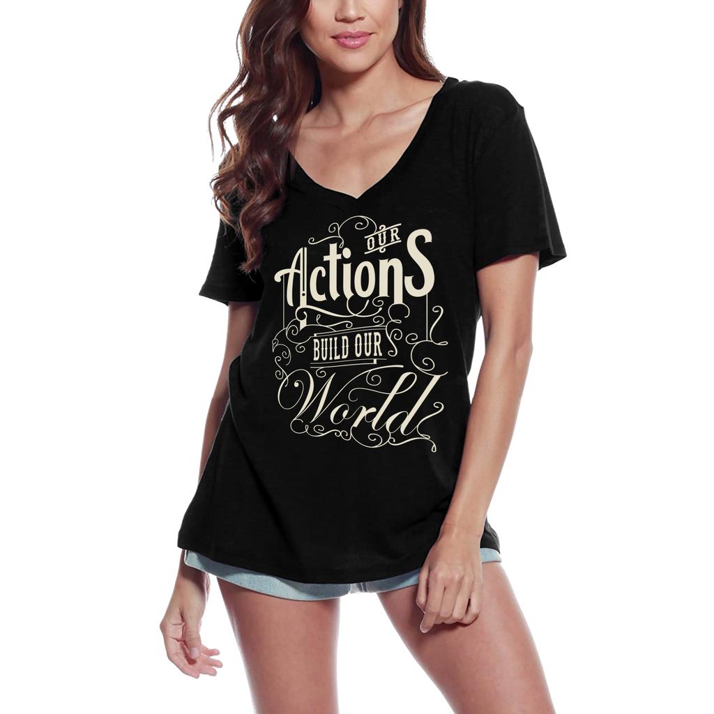 Ultrabasic Women's V-Neck T-Shirt Our Action Build Our World - Motivational Slogan Tee