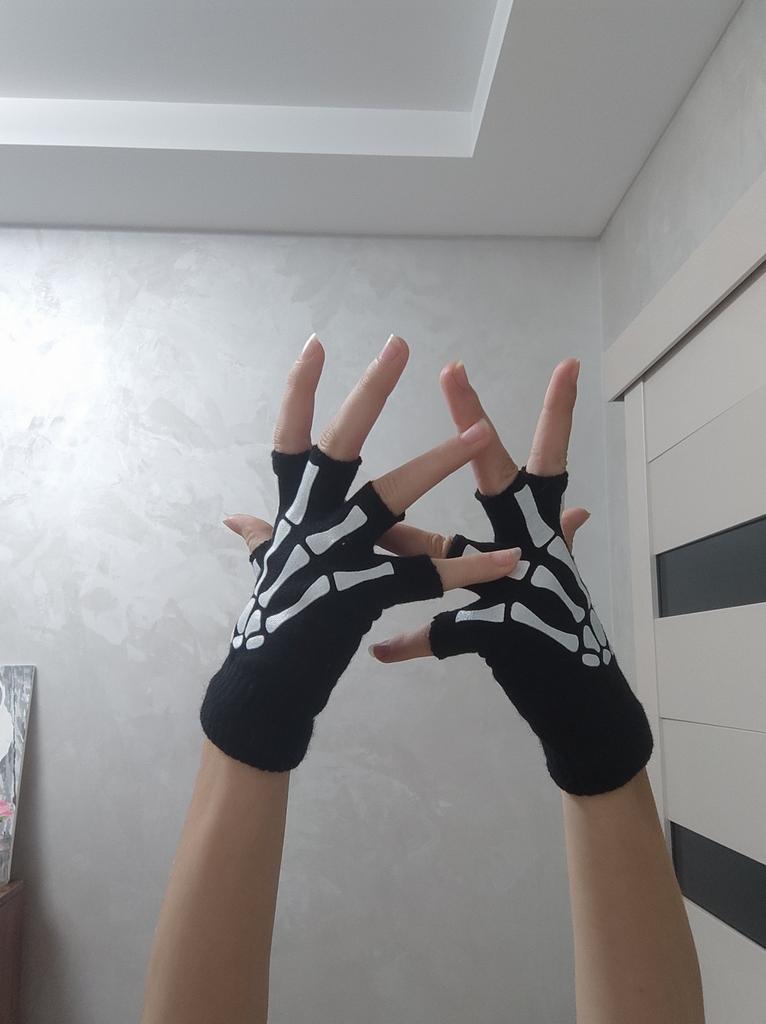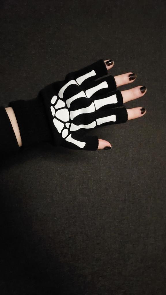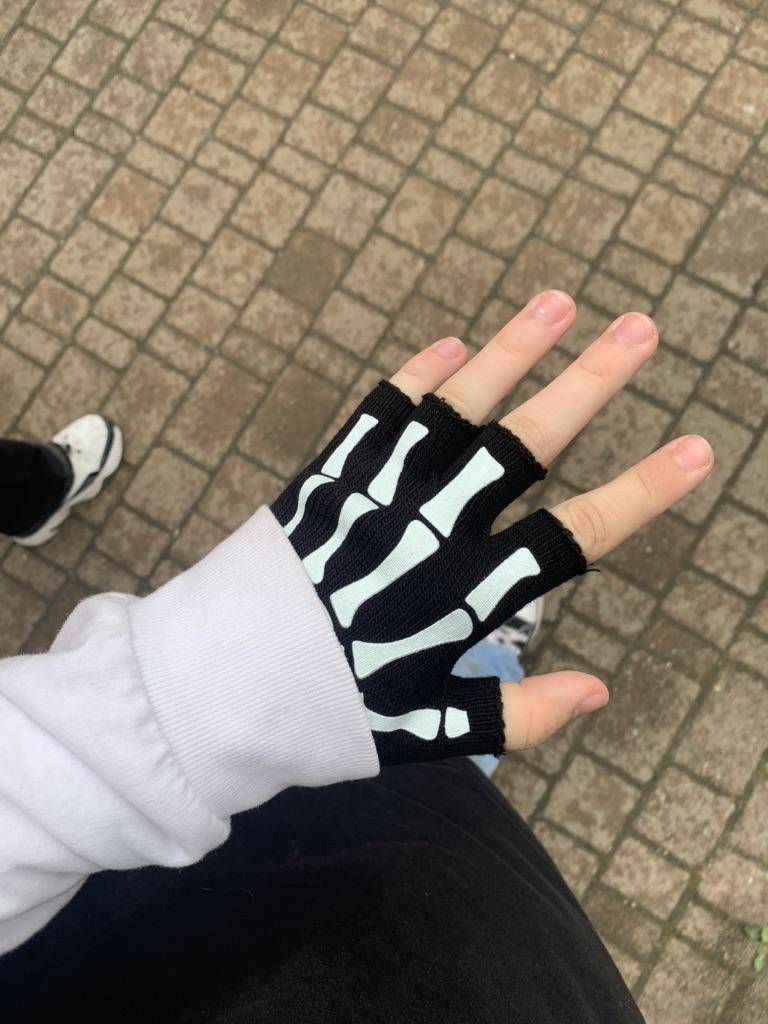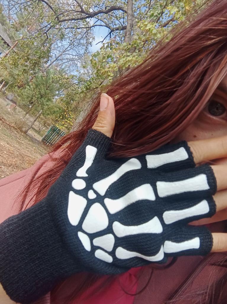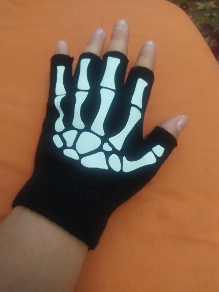 Unisex Adult Halloween Skeleton Skull Half Finger Gloves Luminous Winter Mittens