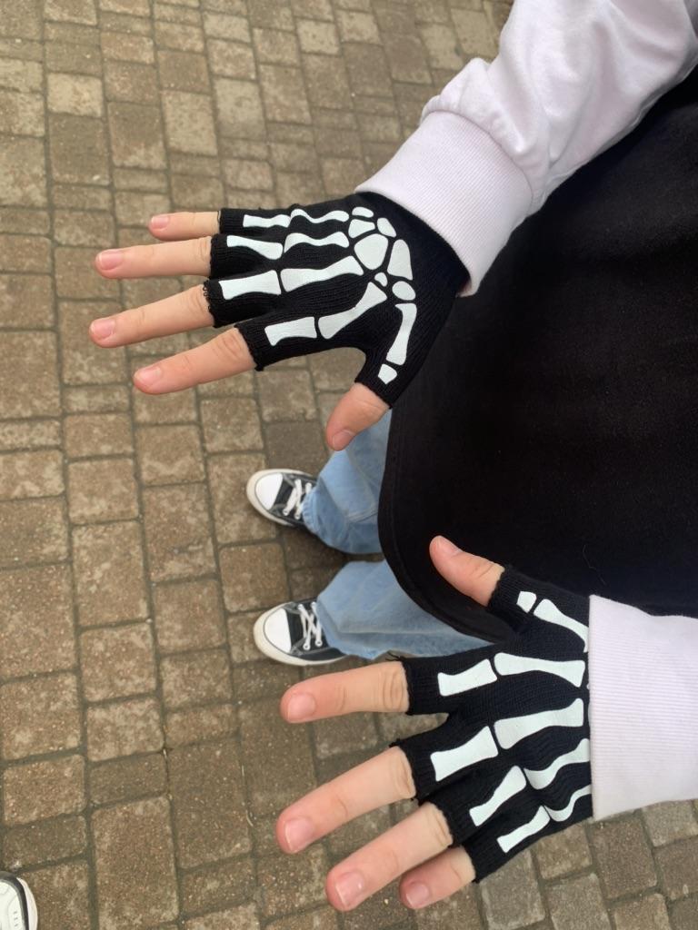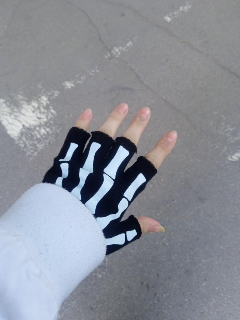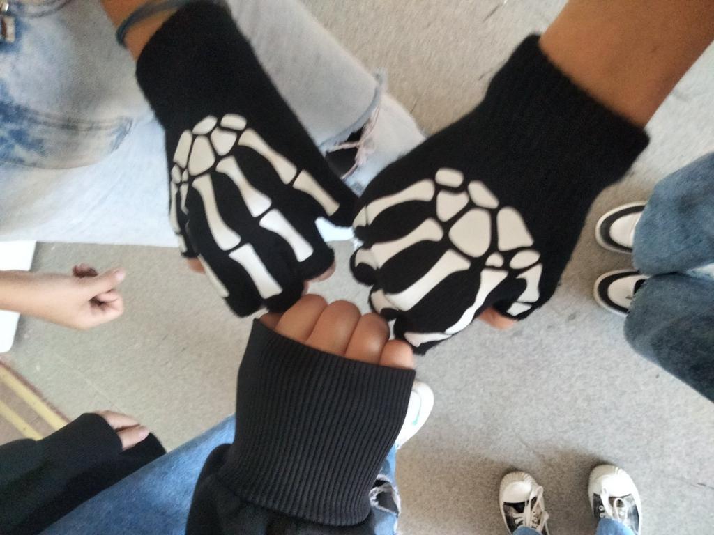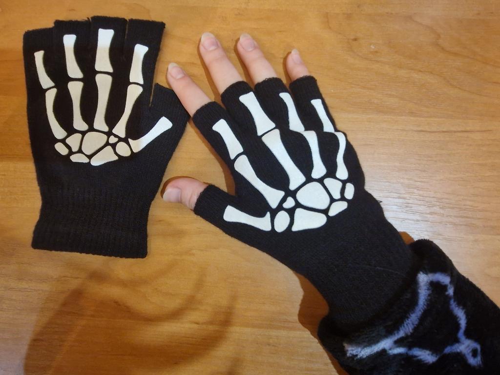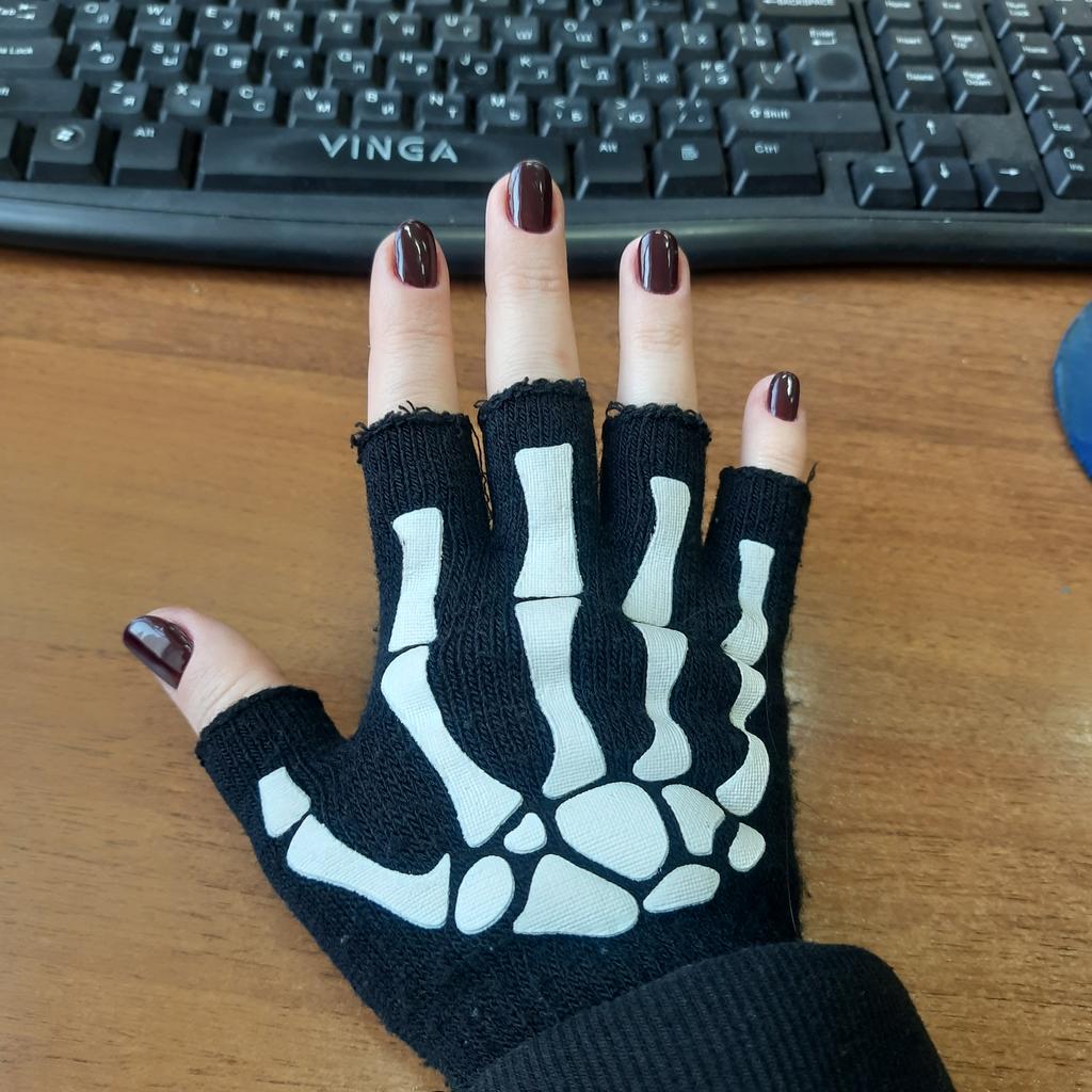 Unisex Adult Halloween Skeleton Skull Half Finger Gloves Luminous Winter Mittens