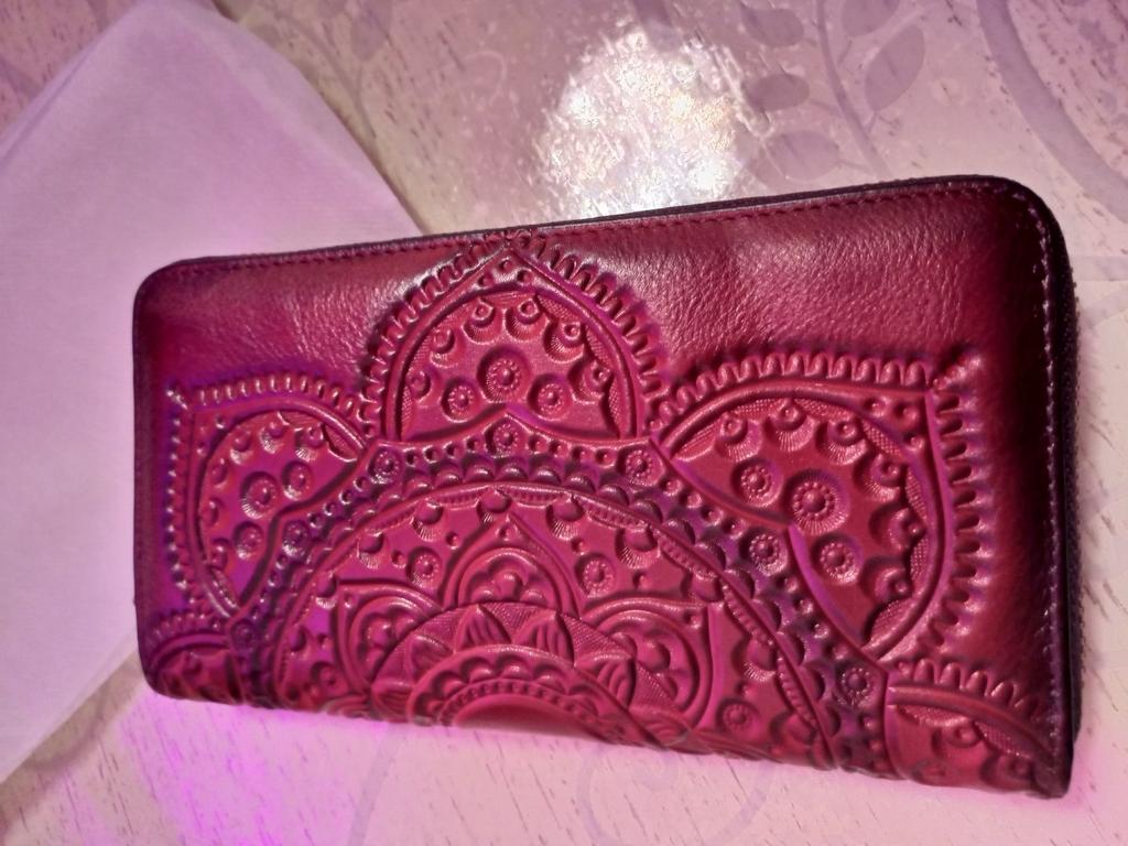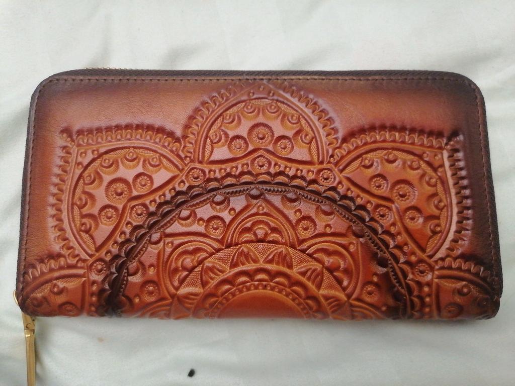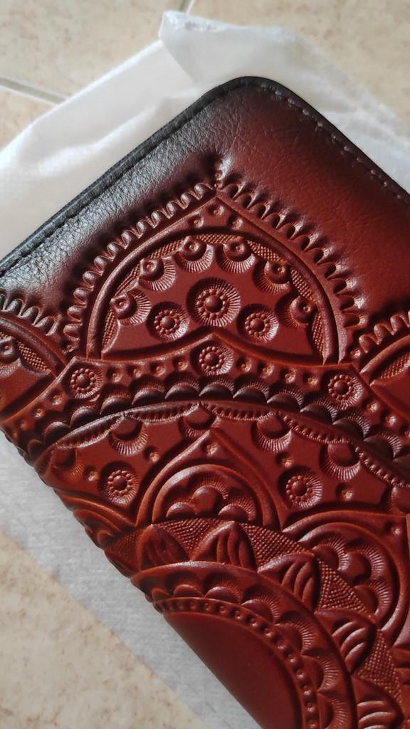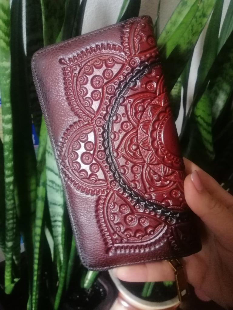 The wallet is beautiful with a lot of space to accommodate even the cell phone. I've been wanting to buy one made of engraved leather for a long time, I loved it and it came in the color I asked for