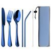 Light Portable 8 Pieces Flatware Set Stainless Steel Cutlery Set Knife Fork Spoon Juice Straws Clean Brush With Travel Bag