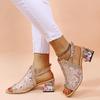 Women Summer Rhinestone Sandals Ladies Buckle Lace Mesh Beach Heel Shoe