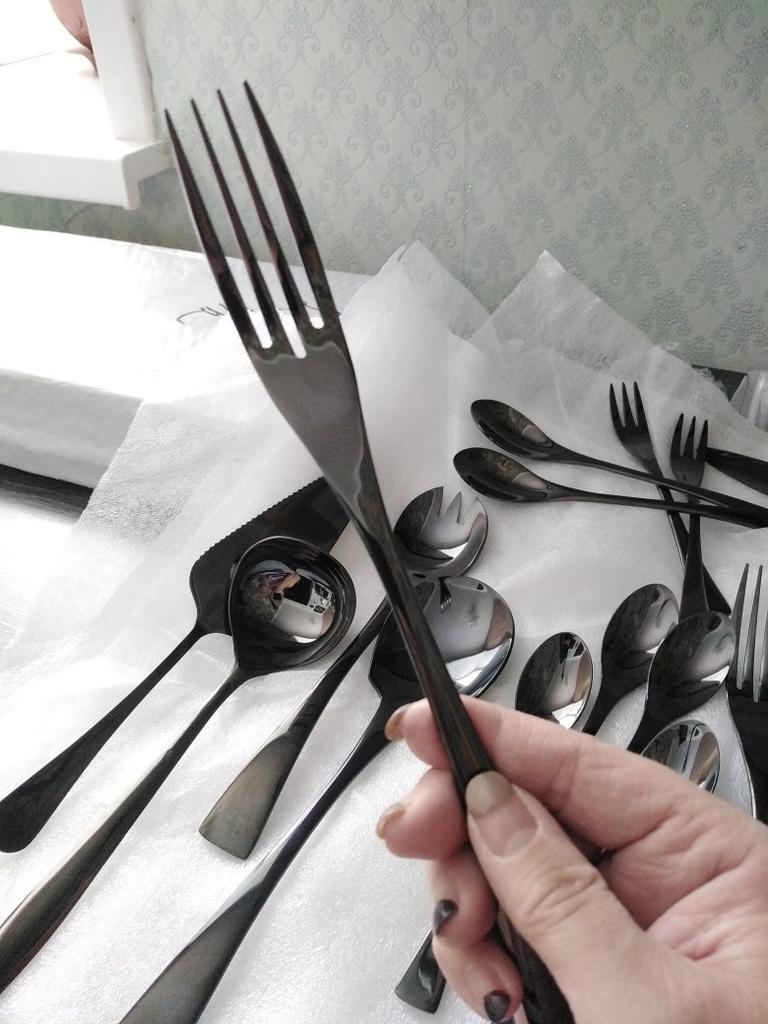 4/8/20pcs Black Dinnerware Set Mirror Dessert Spoon Fork Knife Cutlery Set Stainless Steel Flatware Silverware Party Accessories