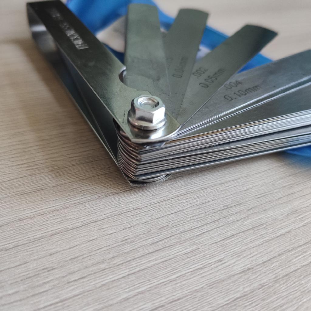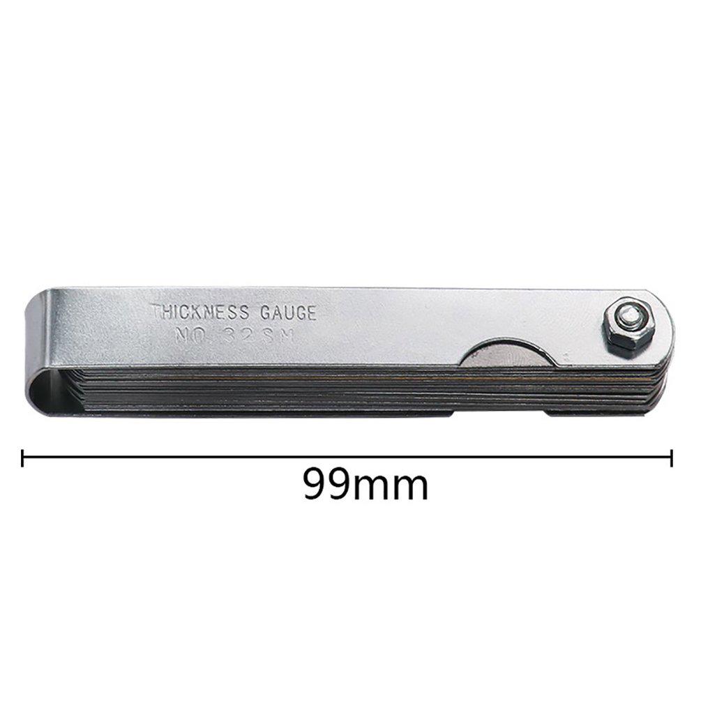 Feeler gauge set: made of 65 manganese steel, each measuring feeler gauge is 32 blades thick; foldable feeler gauge, easy to carry and store.