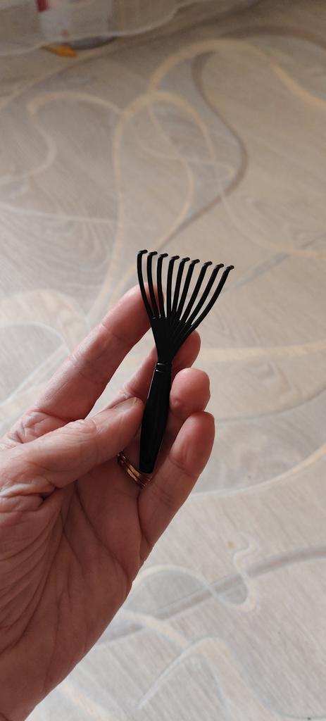 The brush is miniature, but it can comb the cat. It also collects hair from clothes, and fur from clothes after fun games with beloved pets. It can loosen the soil in a flower pot, which the flowers will be unspeakably happy about...