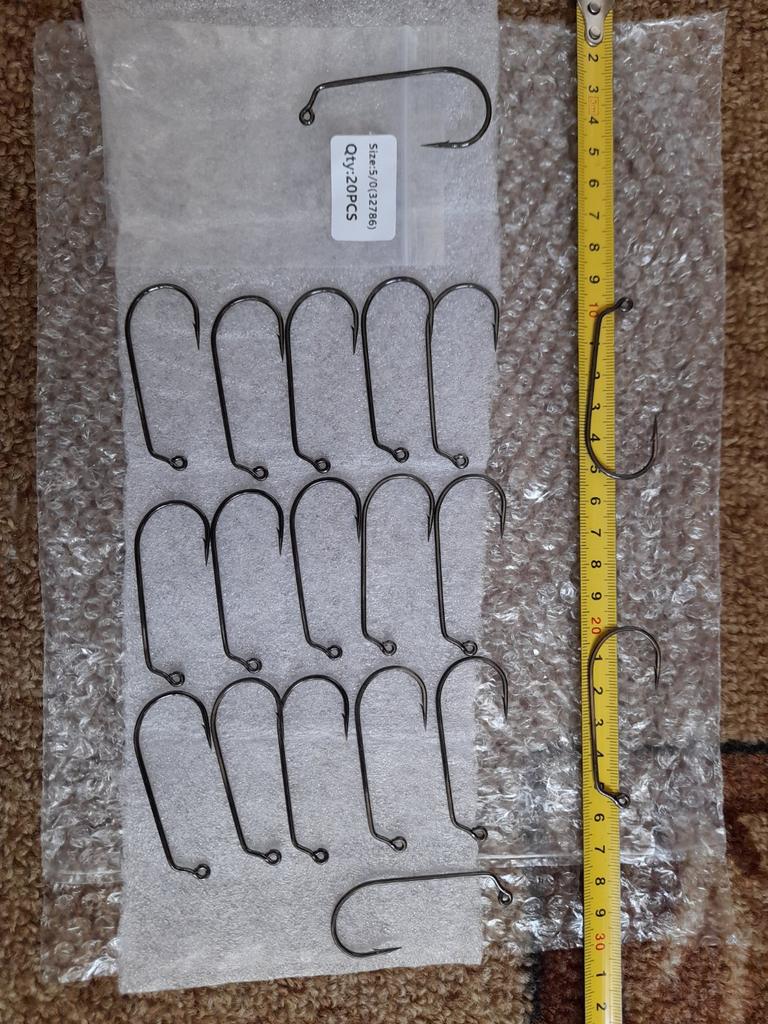 Bimoo 20PCS High Carbon Steel 60 Degree Jig Hook Thicked Saltwater Freshwater Soft Worm Hooks 1# - 6/0#